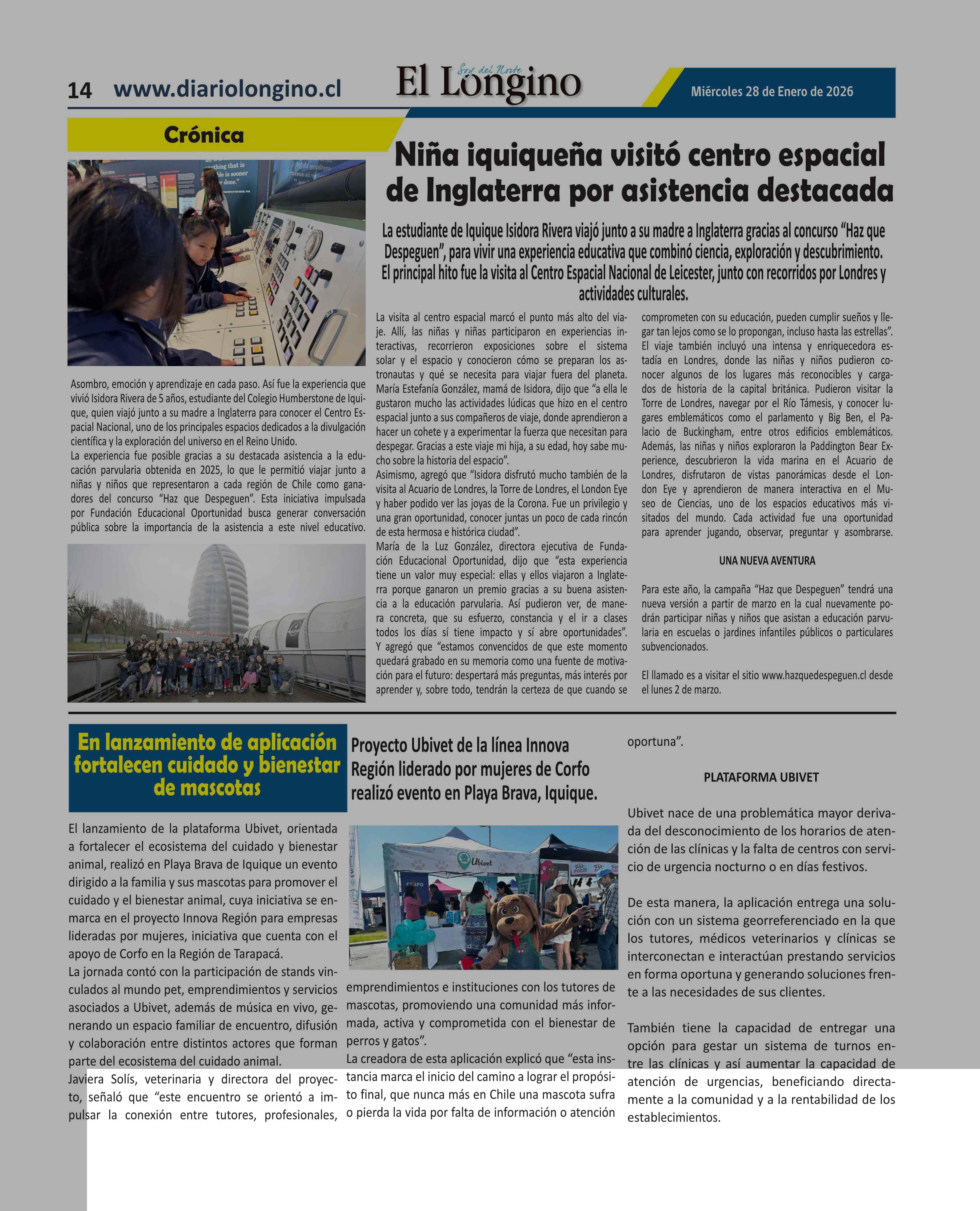 | Fecha: | 28-01-2026 | Sector: | Noticia general | Región: | Región de Tarapacá |