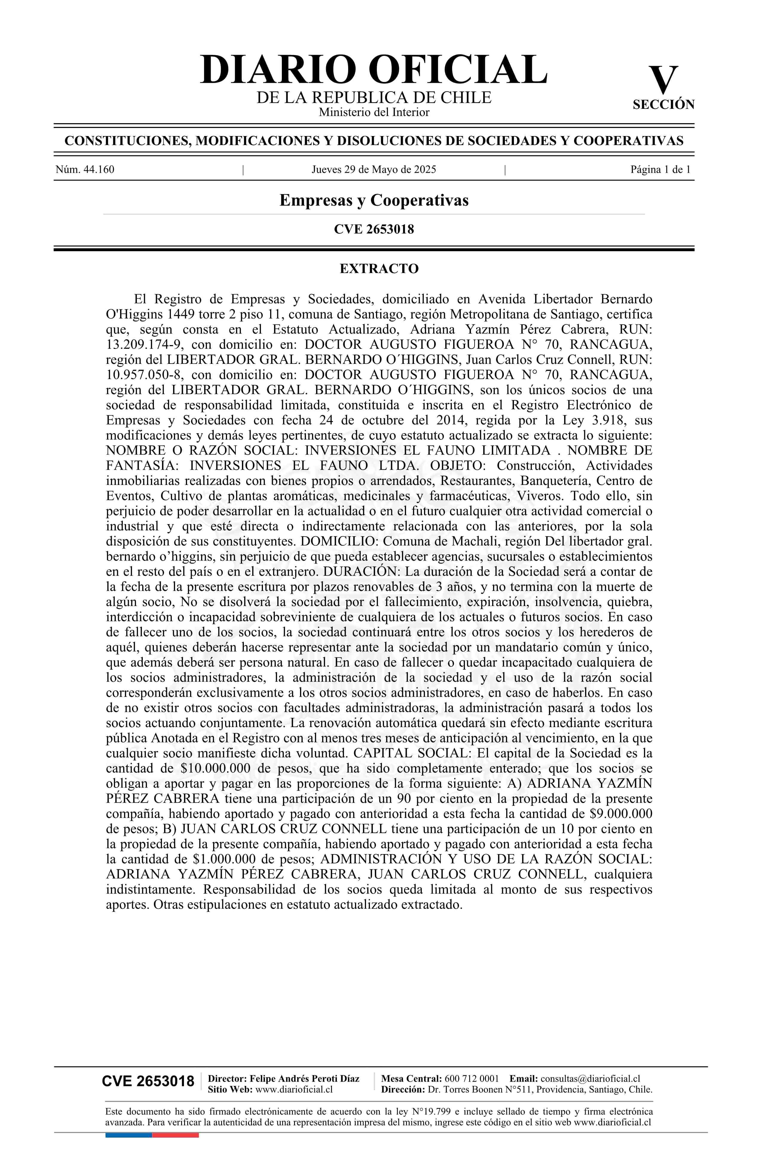 INVERSIONES EL FAUNO LIMITADA 29-05-2025 Diario Oficial Edición Electrónica |