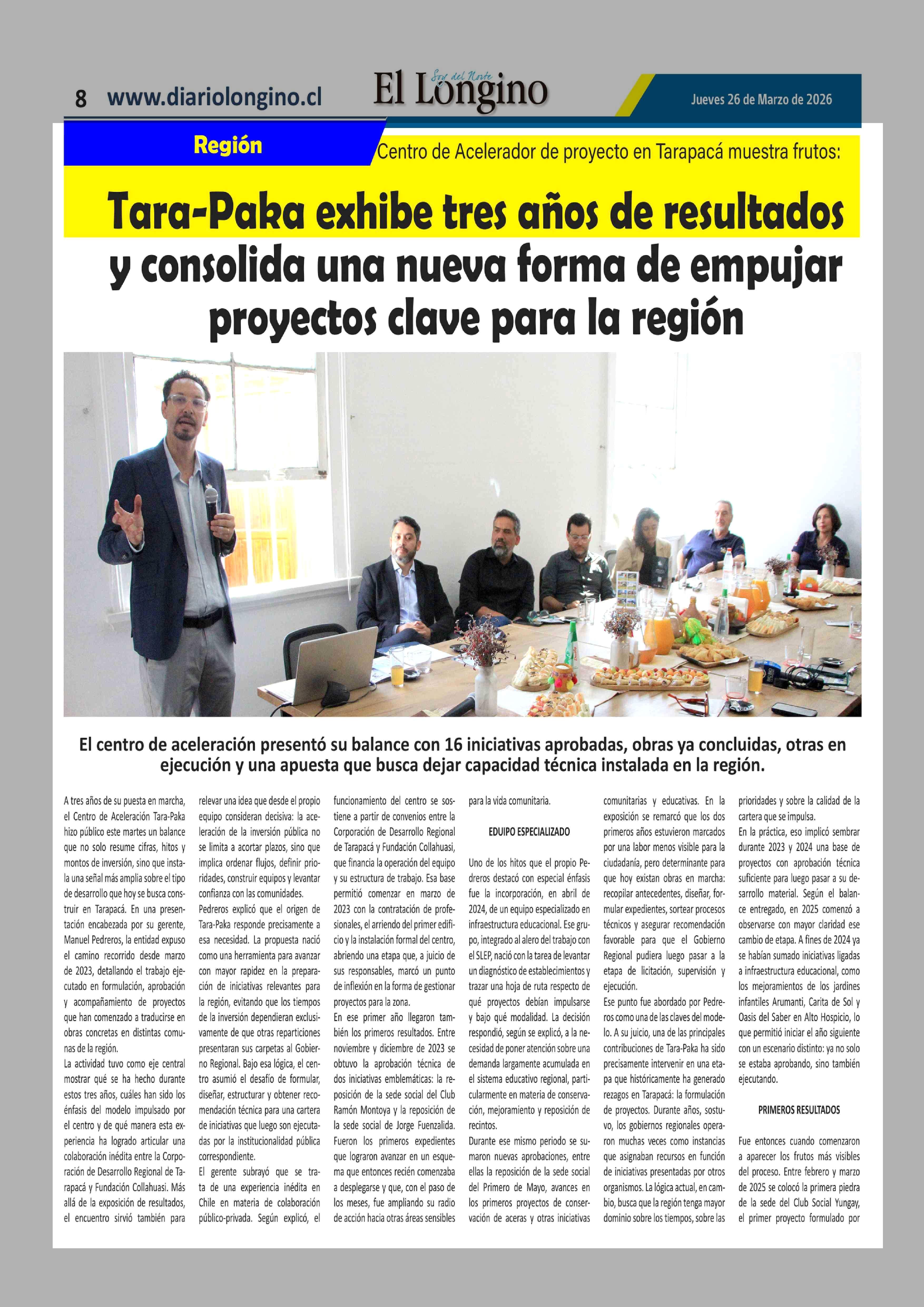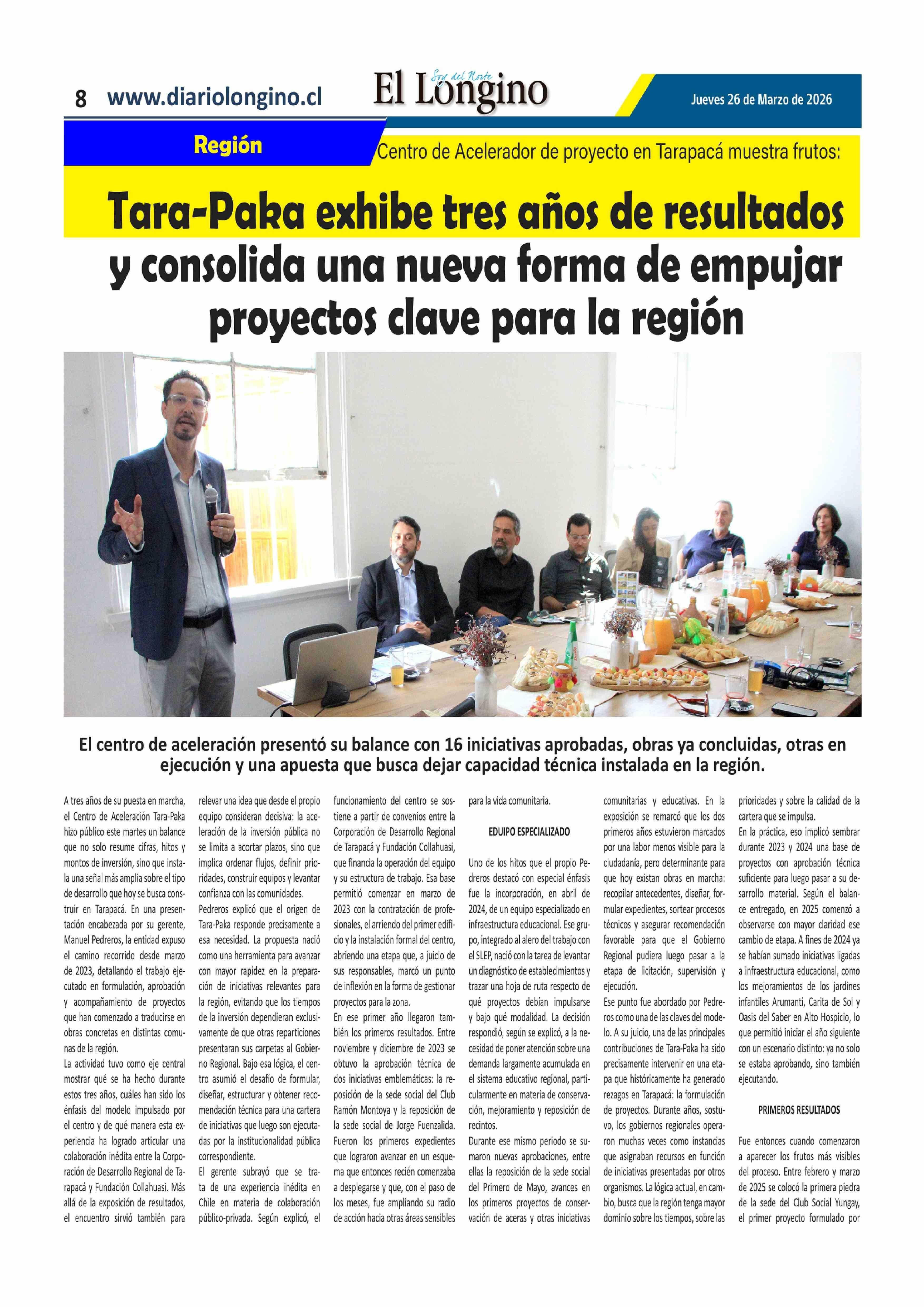 Título: Tara-Paka exhibe tres años de resultados y consolida una nueva forma de empujar proyectos clave para la región