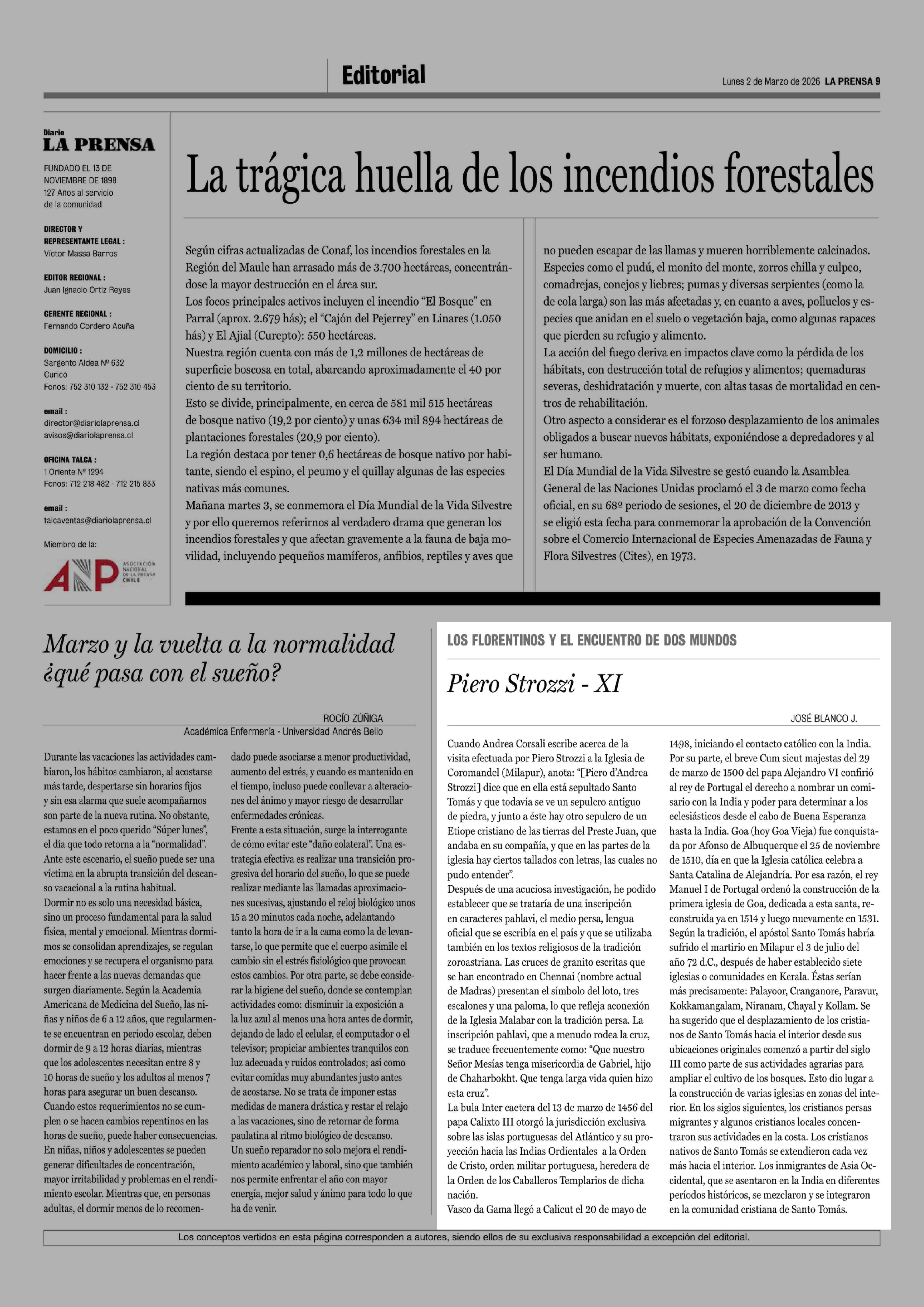 Cartas: Piero Strozzi - XI 02-03-2026 La Prensa de Curicó |