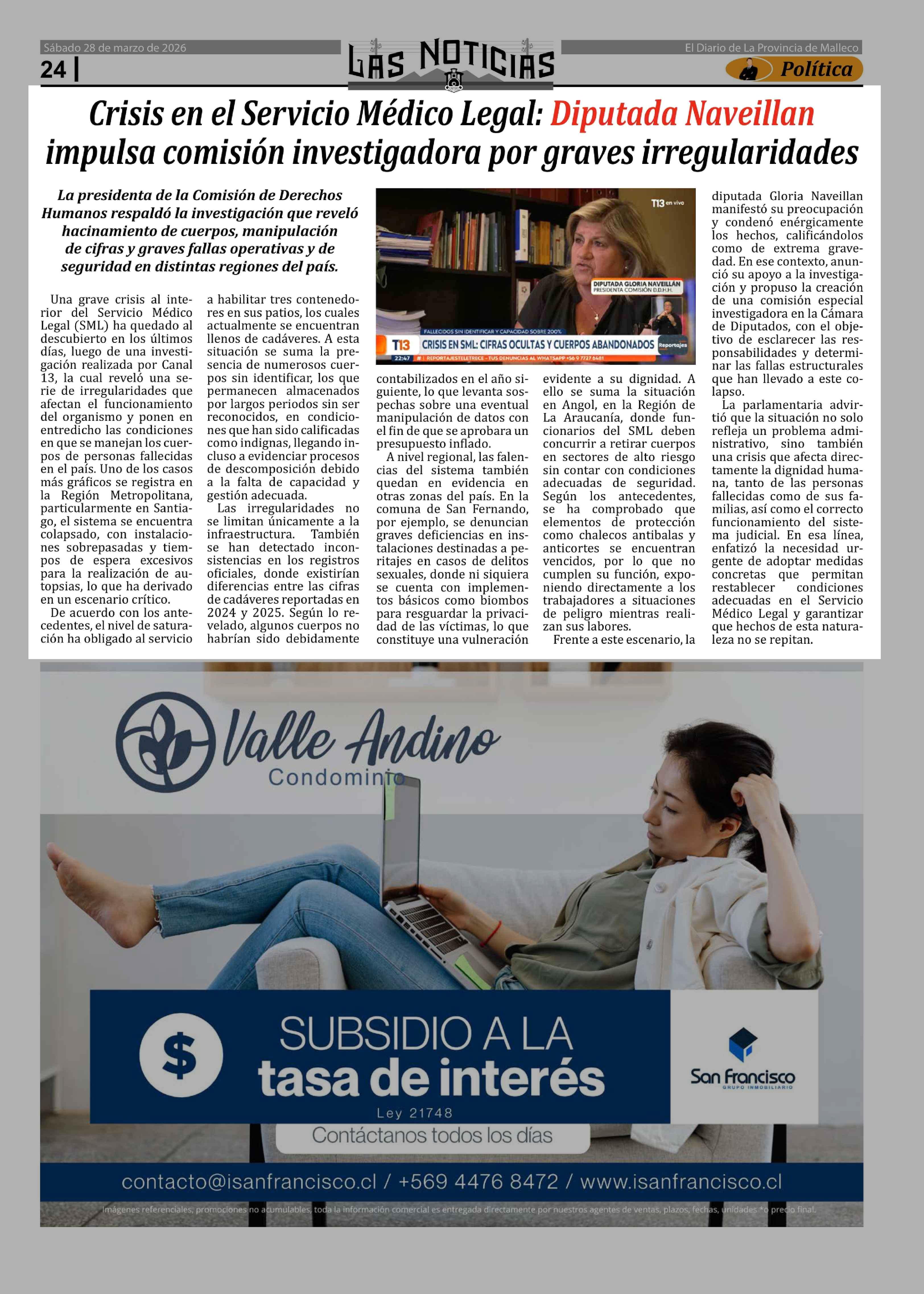 Título: Crisis en el Servicio Médico Legal: Diputada Naveillan impulsa comisión investigadora por graves irregularidades