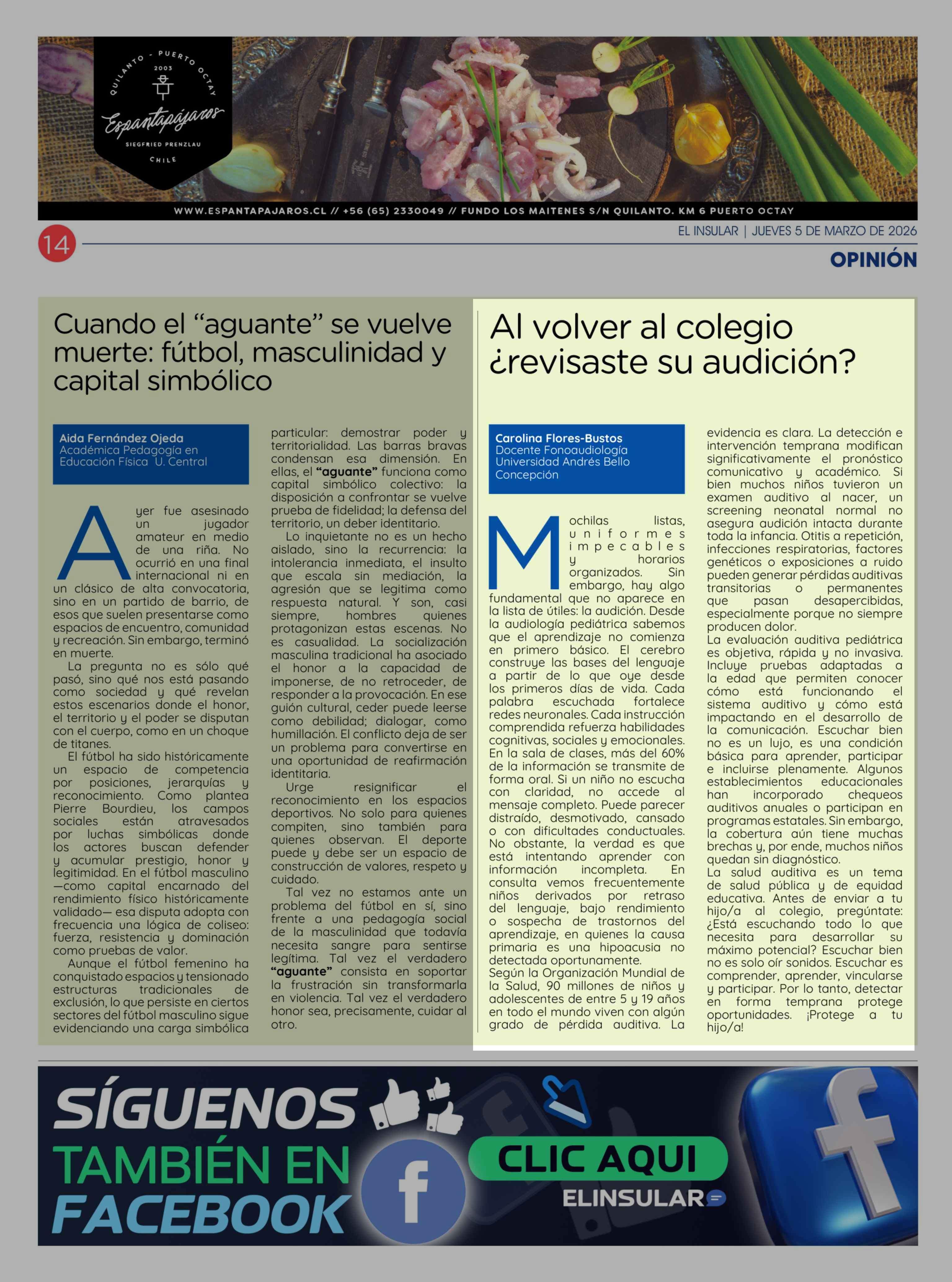 Título: Columnas de Opinión: Al volver al colegio ¿revisaste su audición?