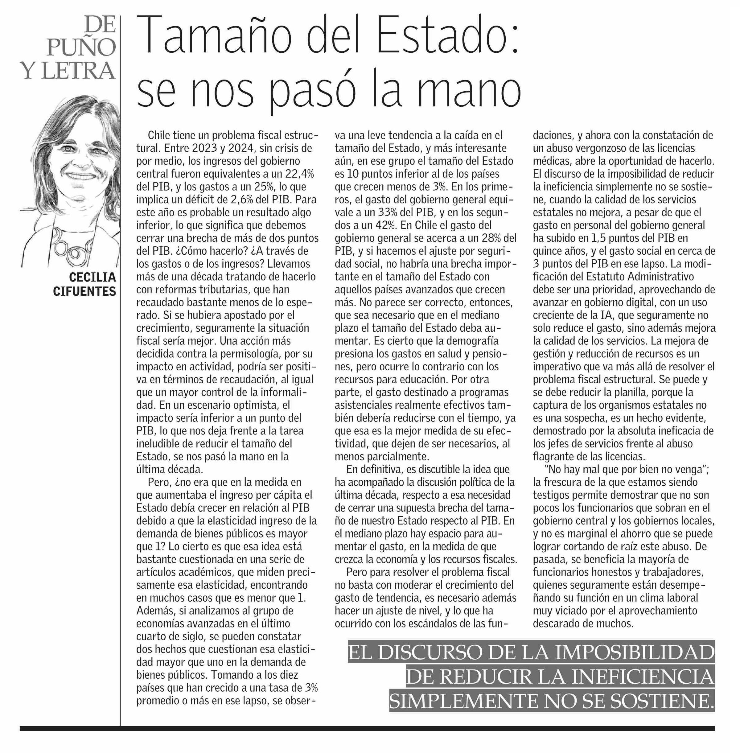 Título: COLUMNAS DE OPINIÓN: Tamaño del Estado: se nos pasó la mano