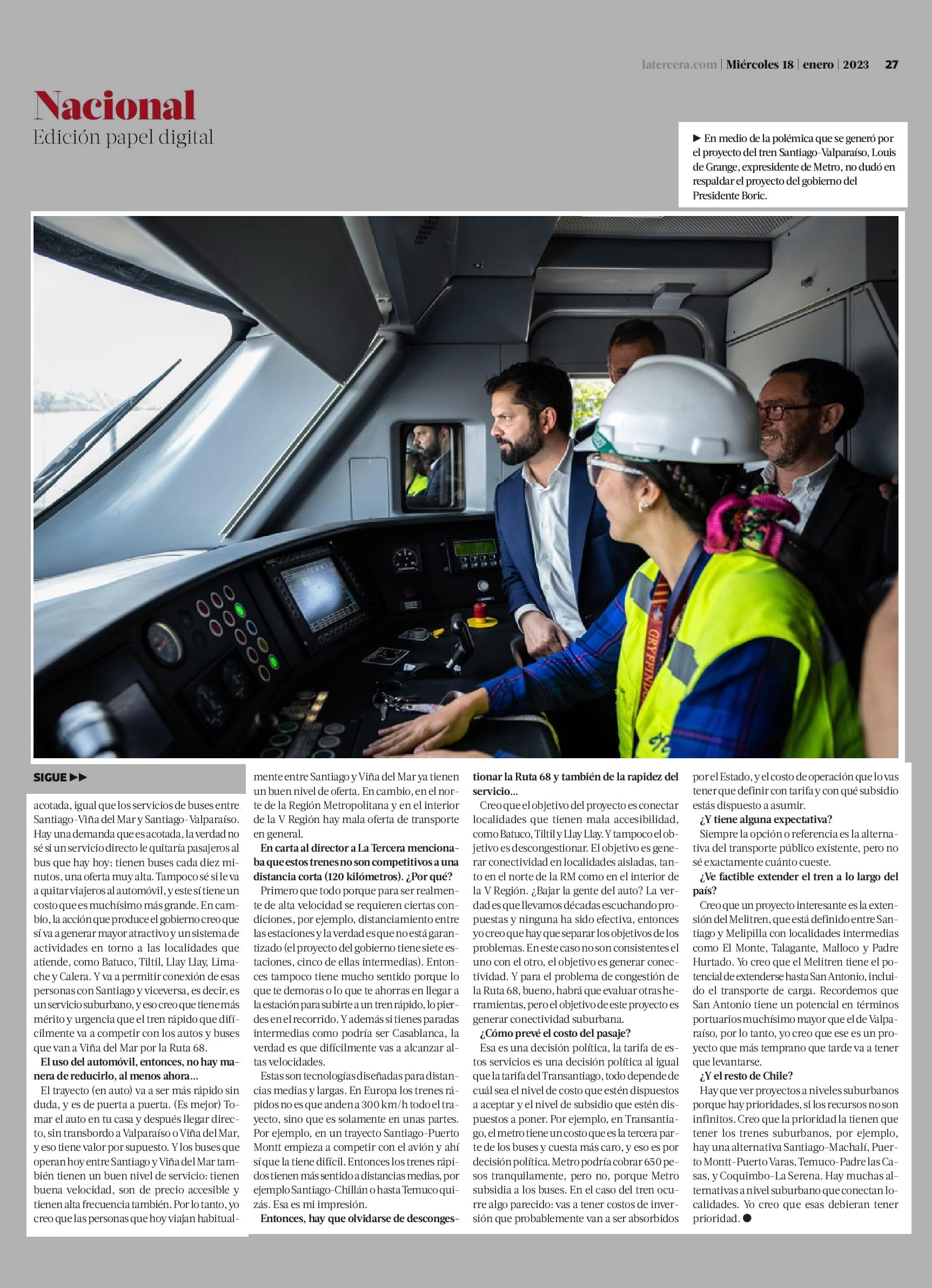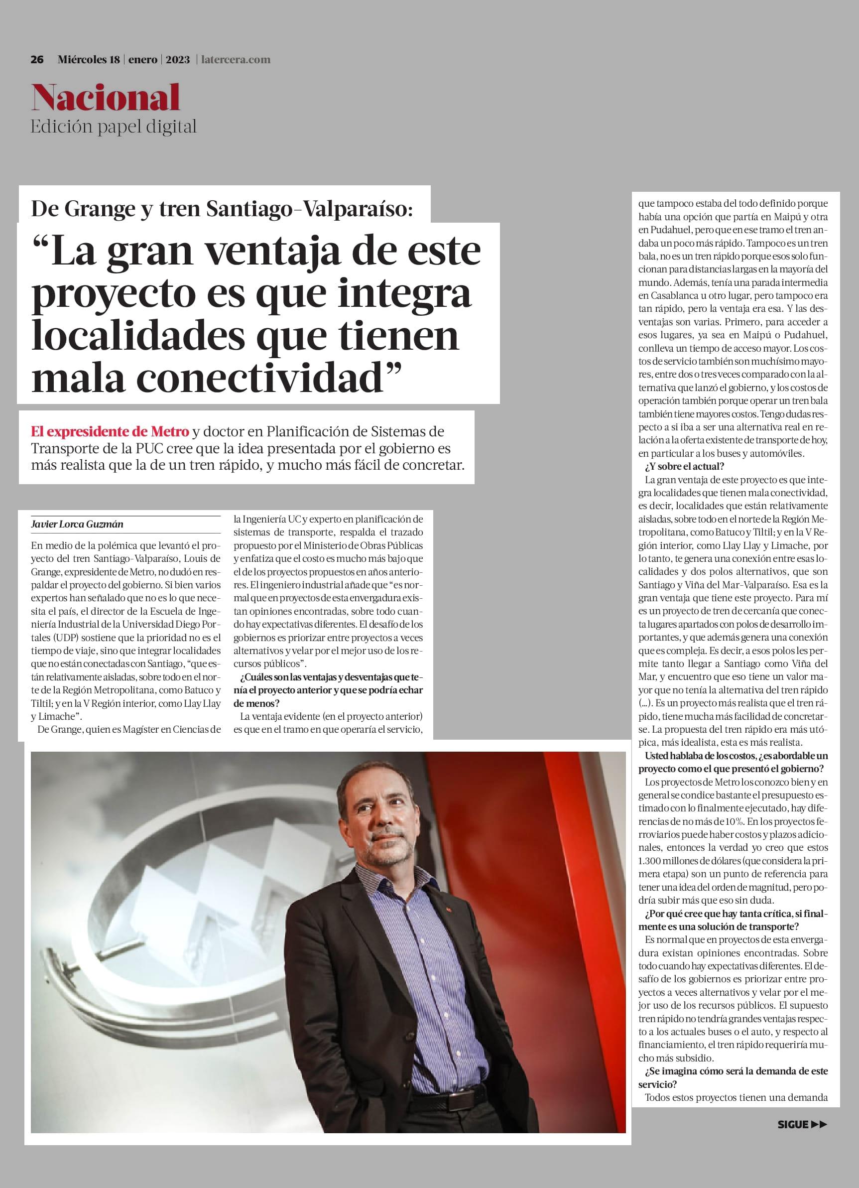 “La gran ventaja de este proyecto es que integra localidades que tienen mala conectividad” 18-01-2023 La Tercera |