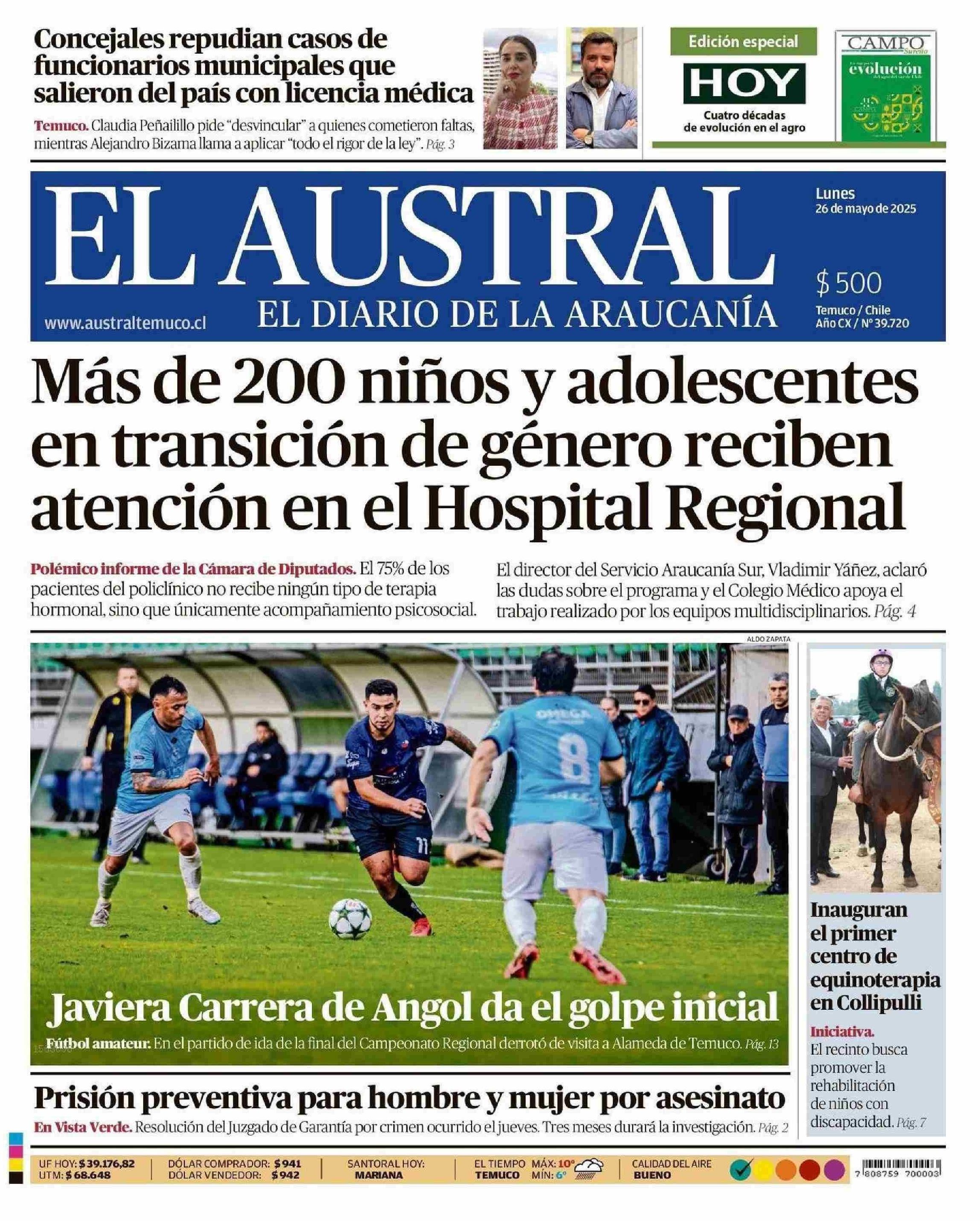 | Fecha: | 26-05-2025 | Sector: | Portada | Región: | Región de la Araucanía |