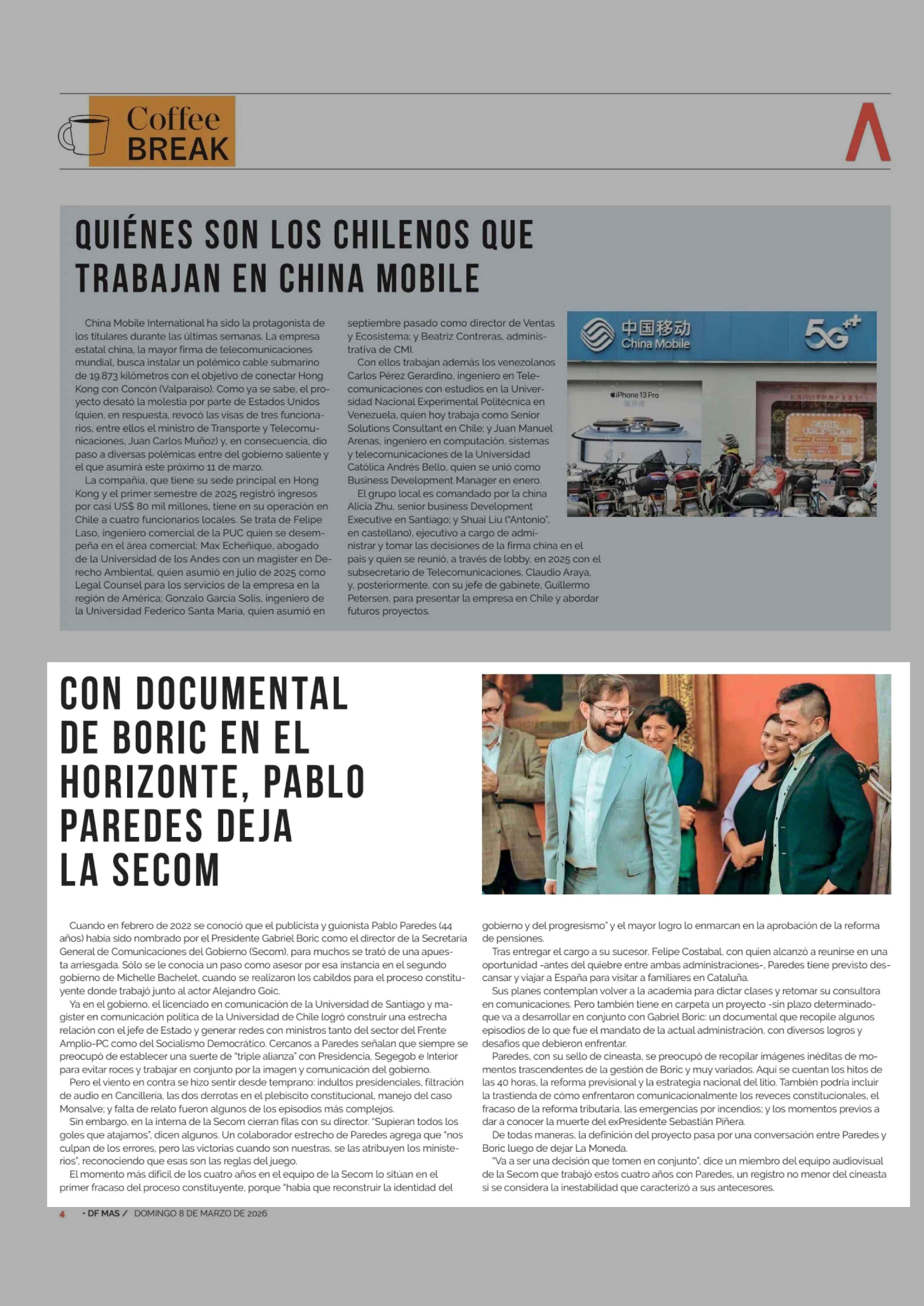 Título: CON DOCUMENTAL DE BORIC EN EL HORIZONTE, PABLO PAREDES DEJA LA SECOM