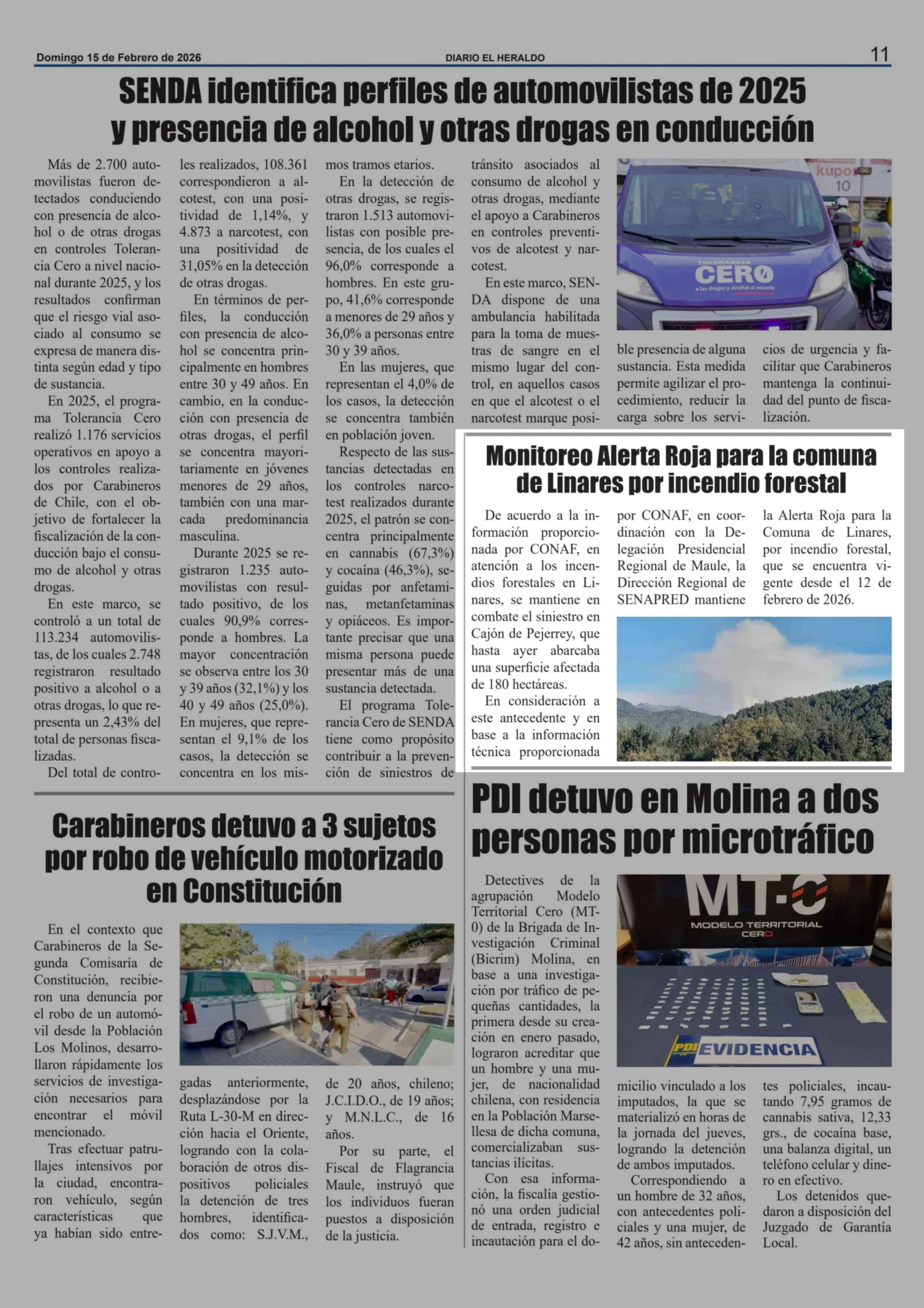 Monitoreo Alerta Roja para la comuna de Linares por incendio forestal 15-02-2026 El Heraldo |