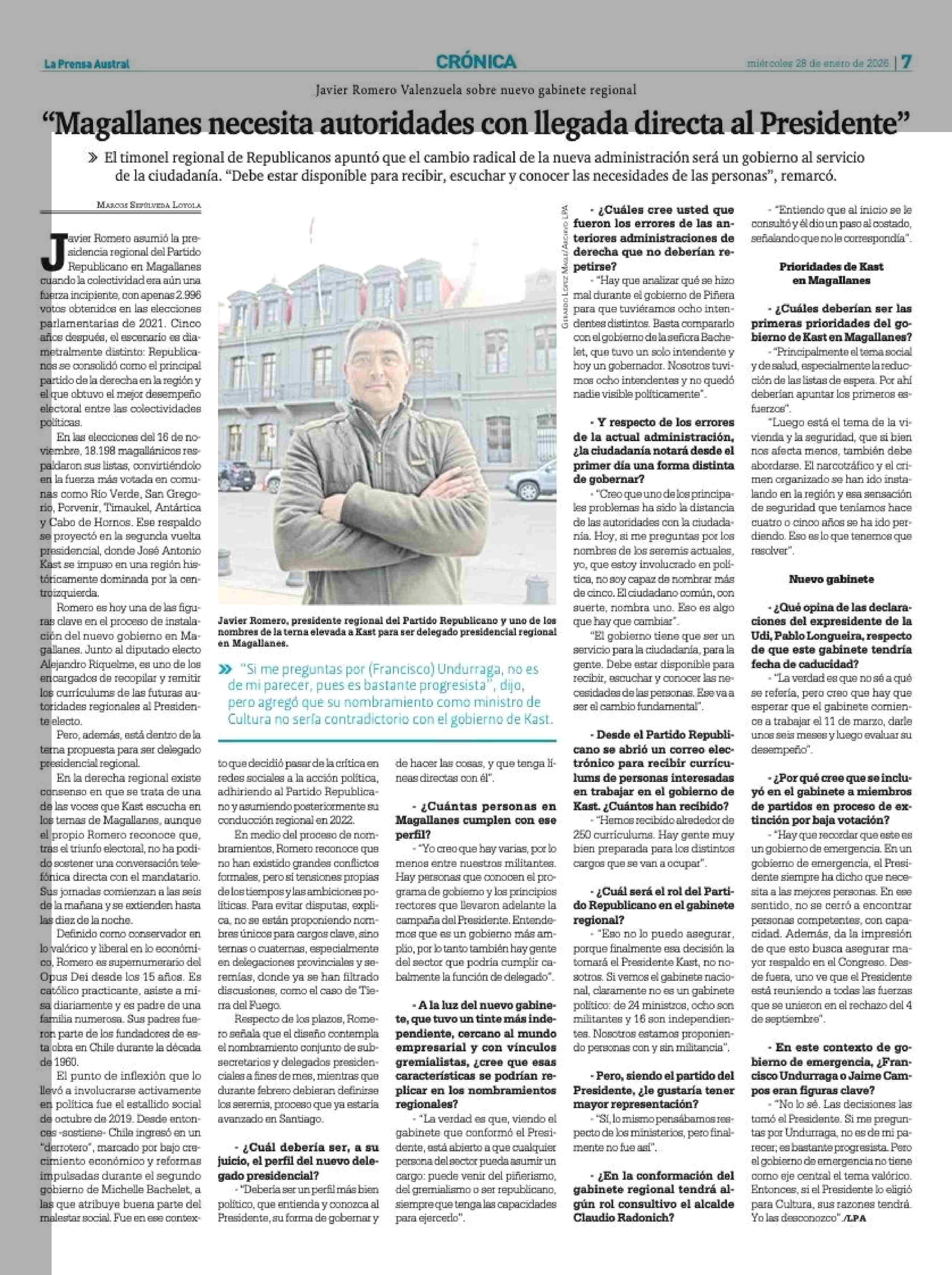 Título: "Magallanes necesita autoridades con llegada directa al Presidente"