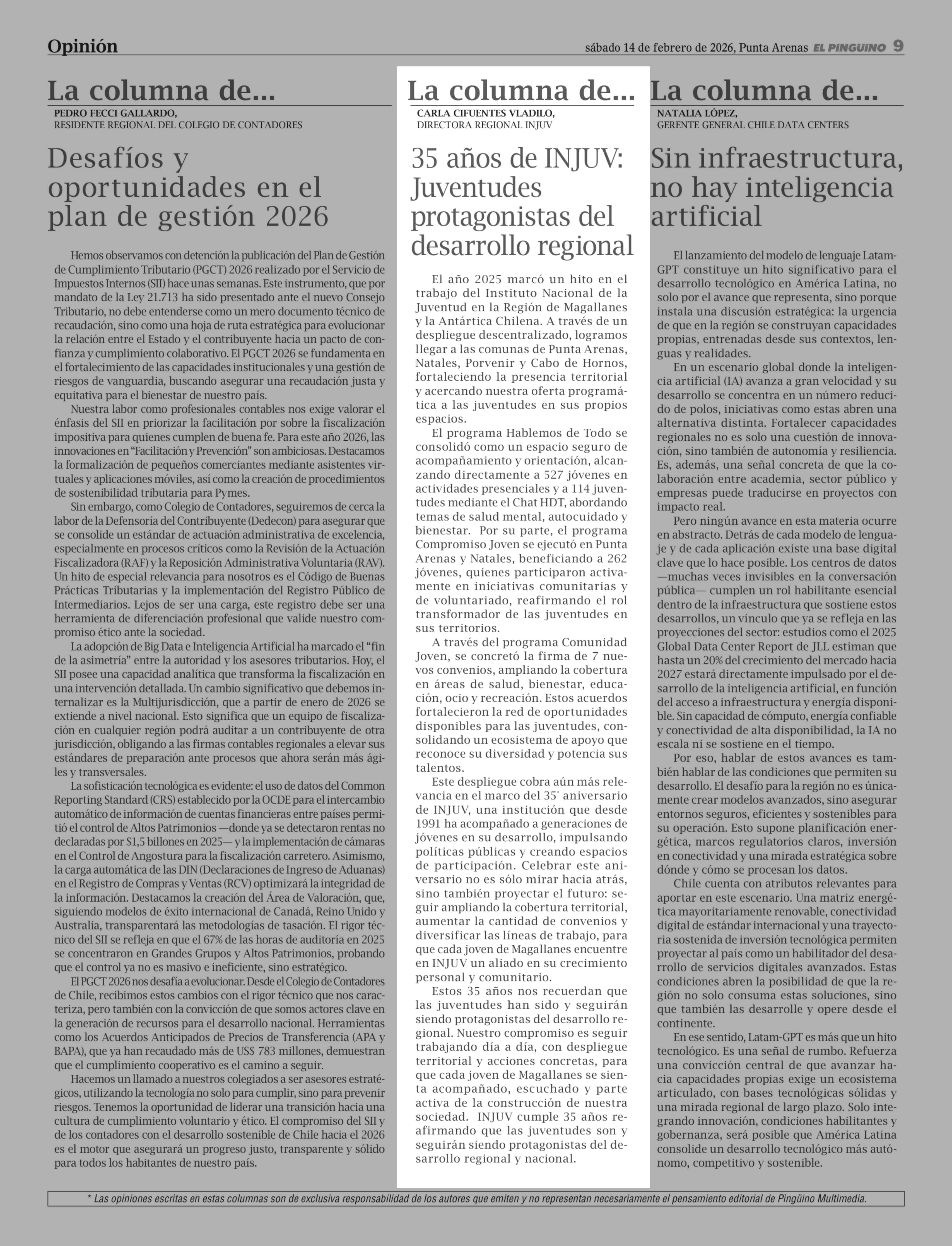 Columnas de Opinión: 35 Años de INJUV: Juventudes protagonistas del desarrollo regional 14-02-2026 El Pingüino |