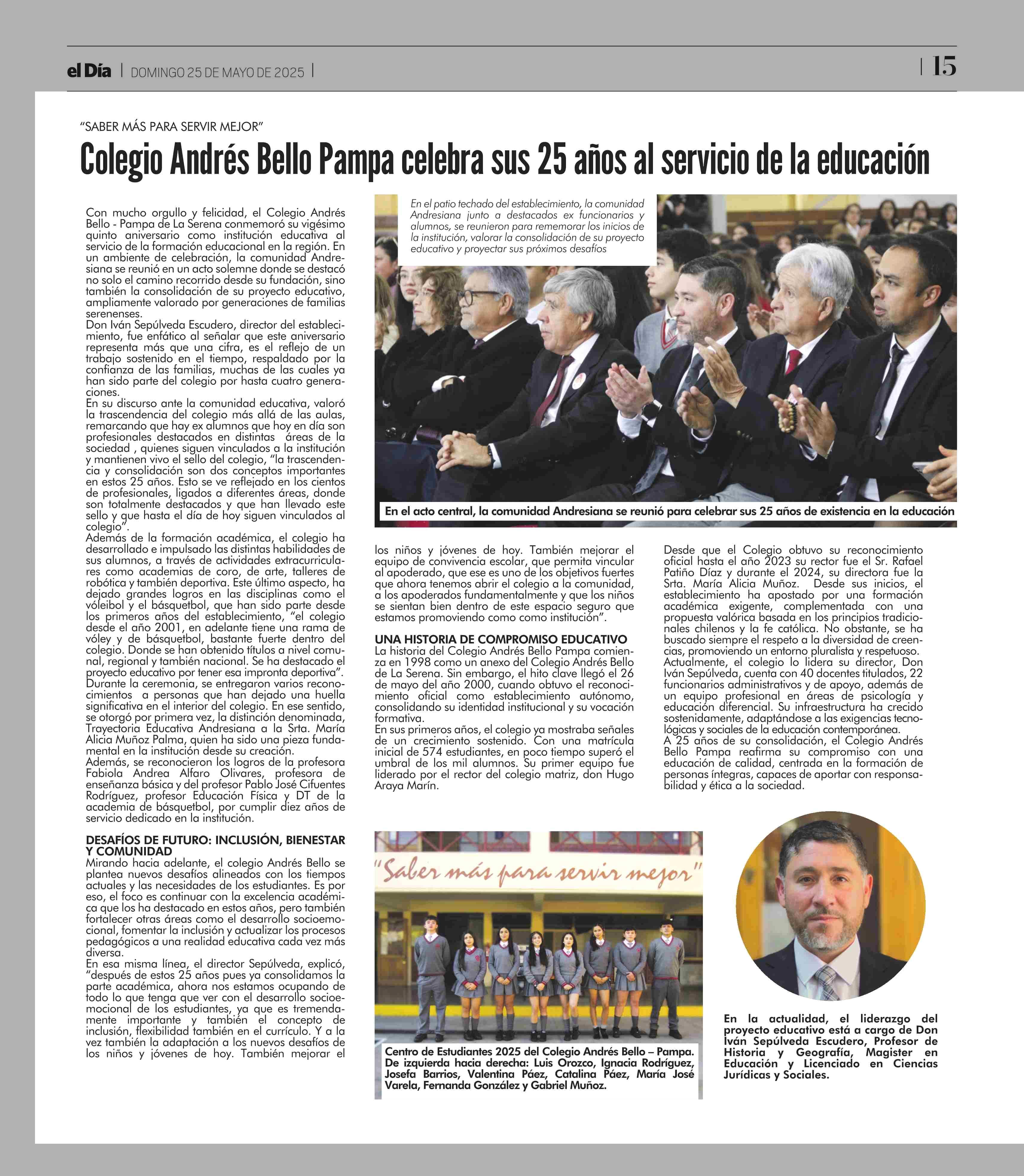 Colegio Andrés Bello Pampa celebra sus 25 años al servicio de la educación 25-05-2025 El Día |