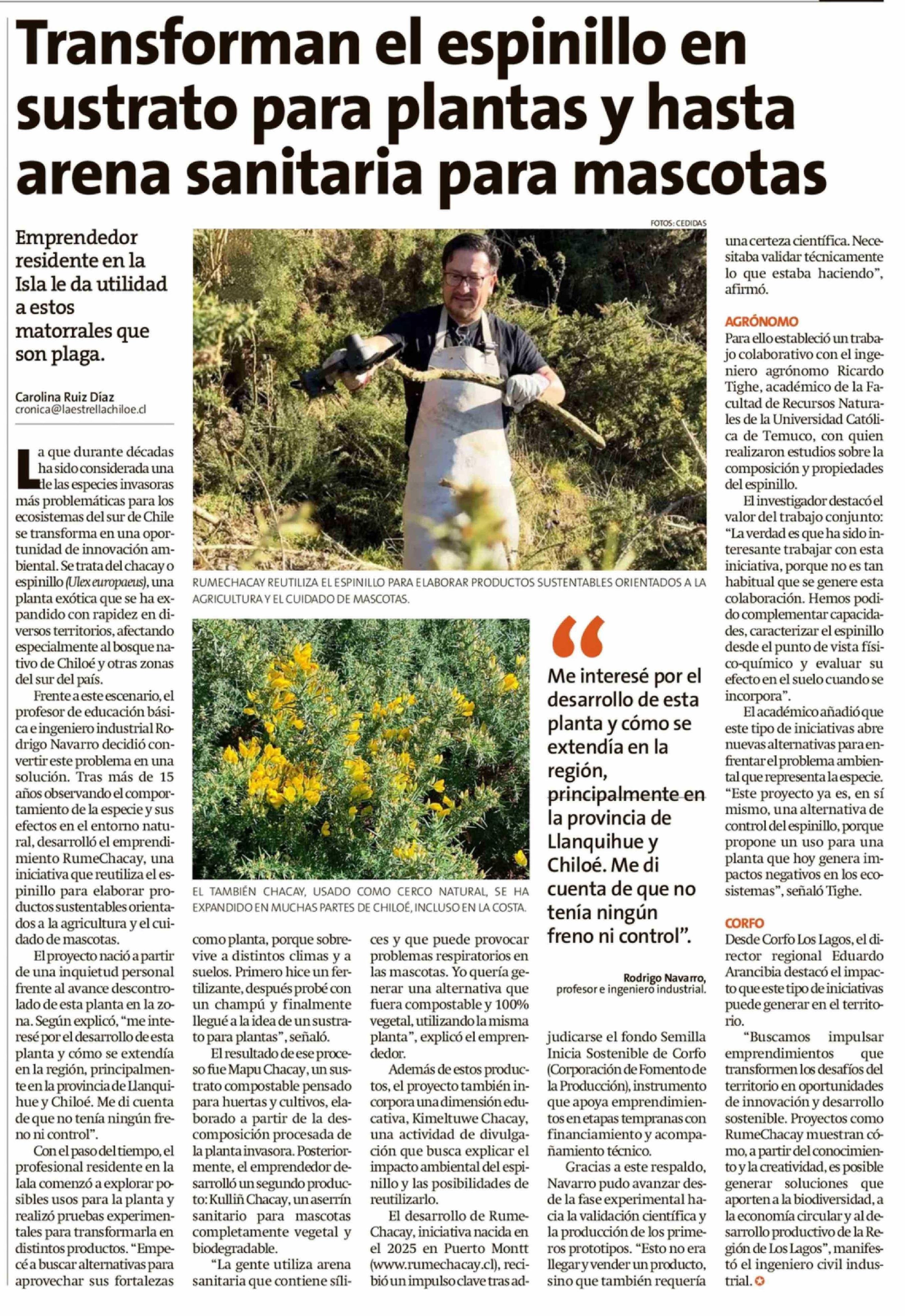 Título: Transforman el espinillo en sustrato para plantas y hasta arena sanitaria para mascotas