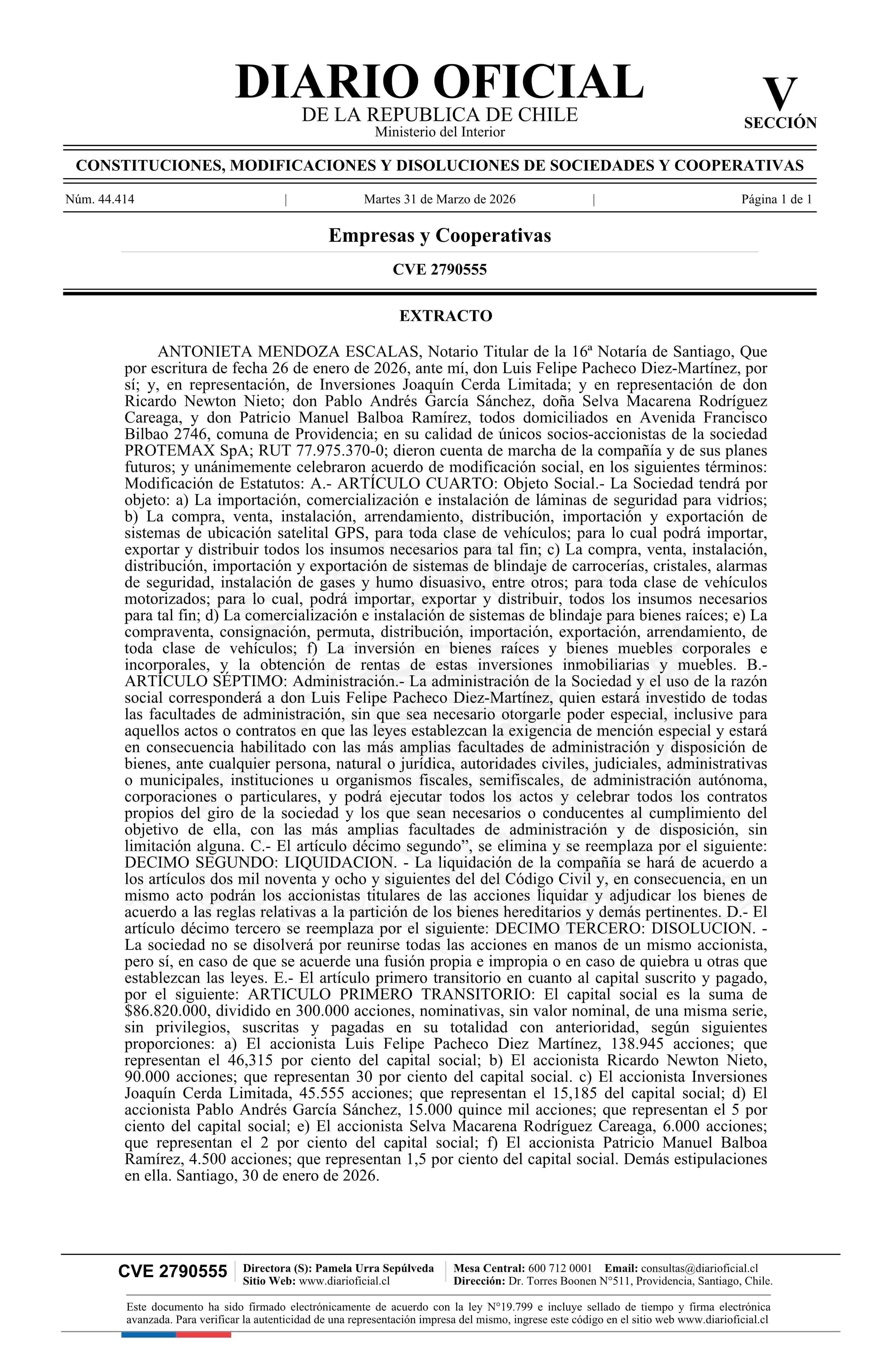 PROTEMAX SpA 77.975.370-0* 31-03-2026 Diario Oficial Edición Electrónica |