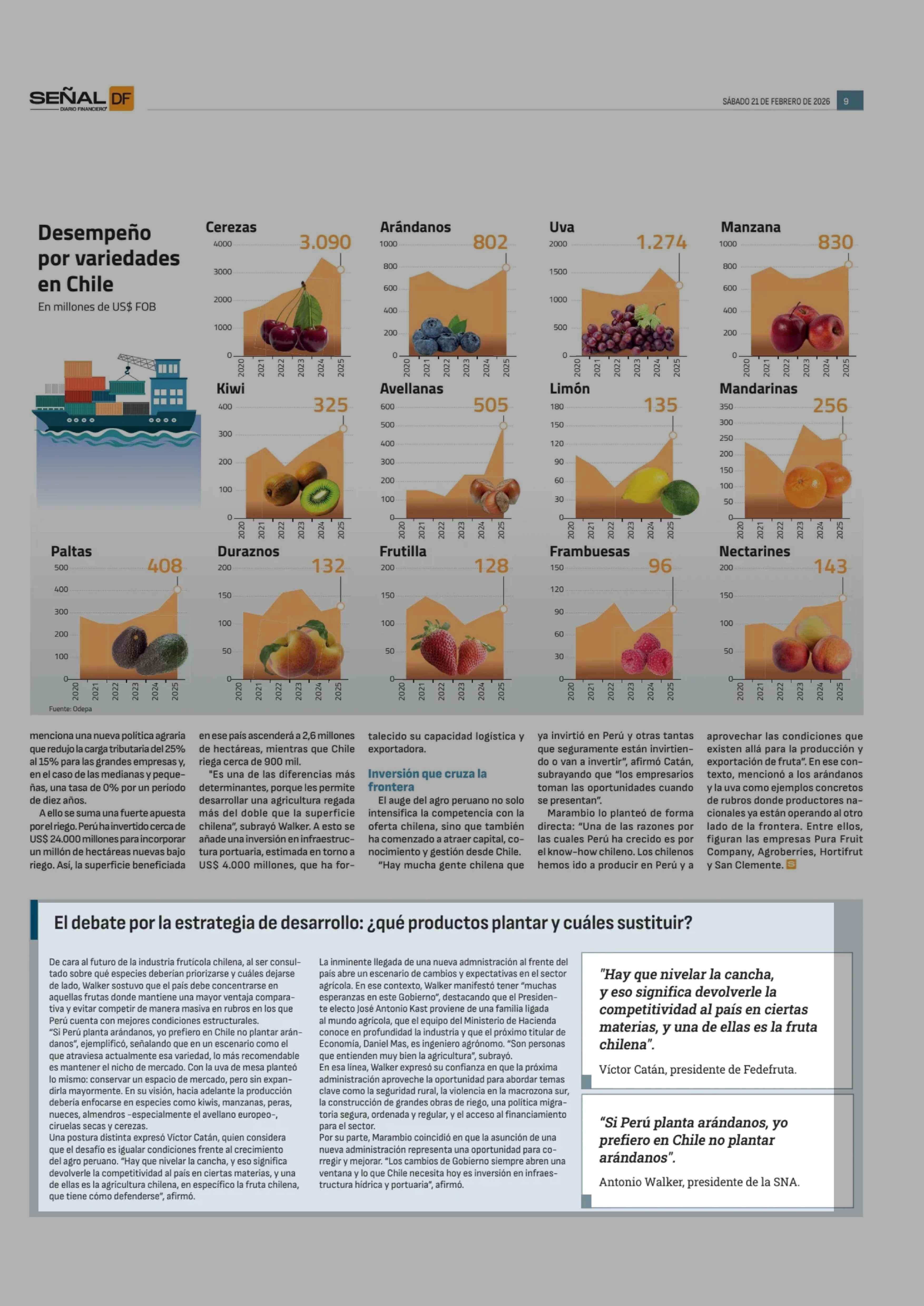 El debate por la estrategia de desarrollo: ¿ qué productos plantar y cuáles sustituir? 21-02-2026 Diario Financiero |