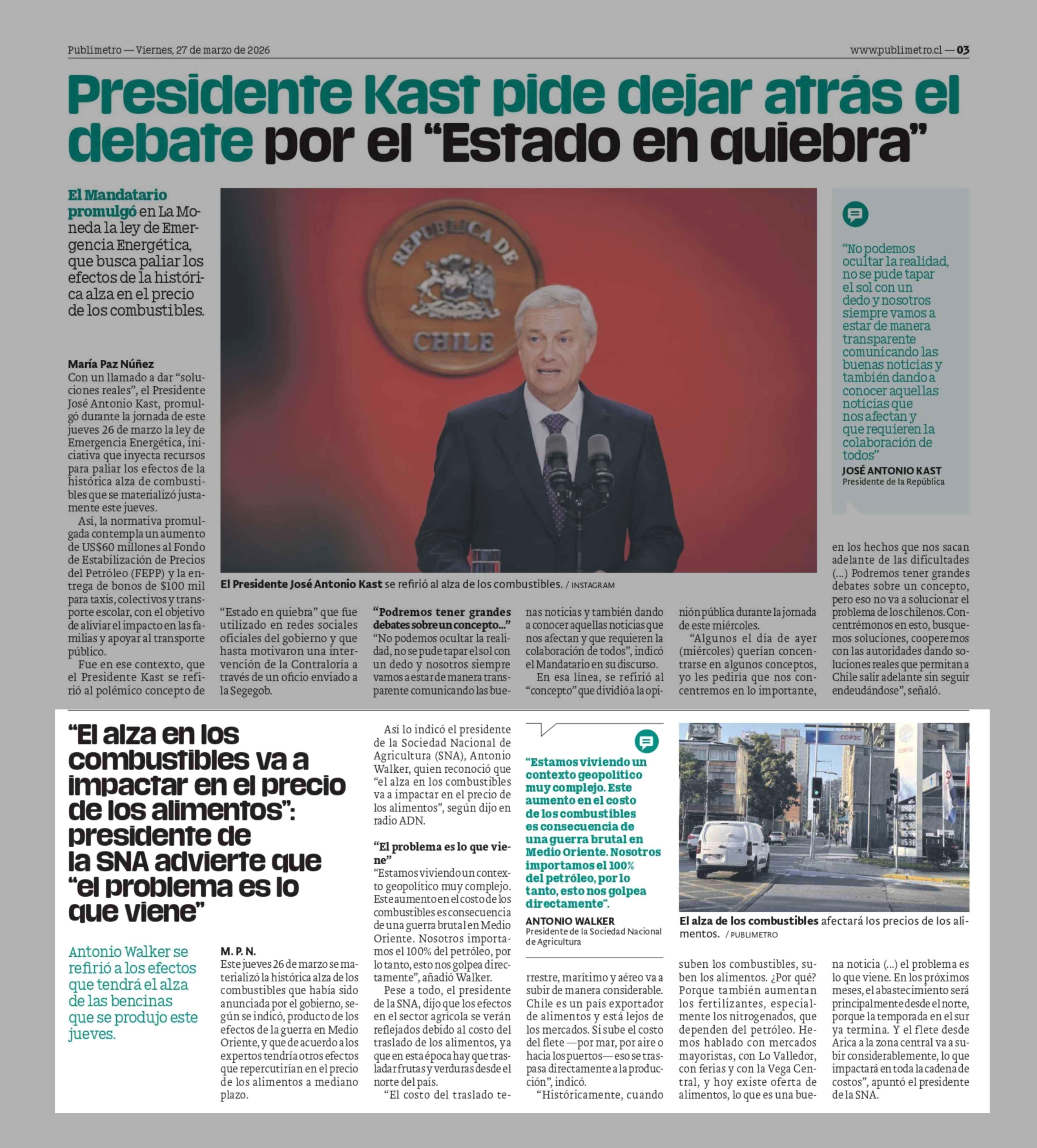 Fecha: 27-03-2026 Sector: Noticia general Región: Región Metropolitana de Santiago