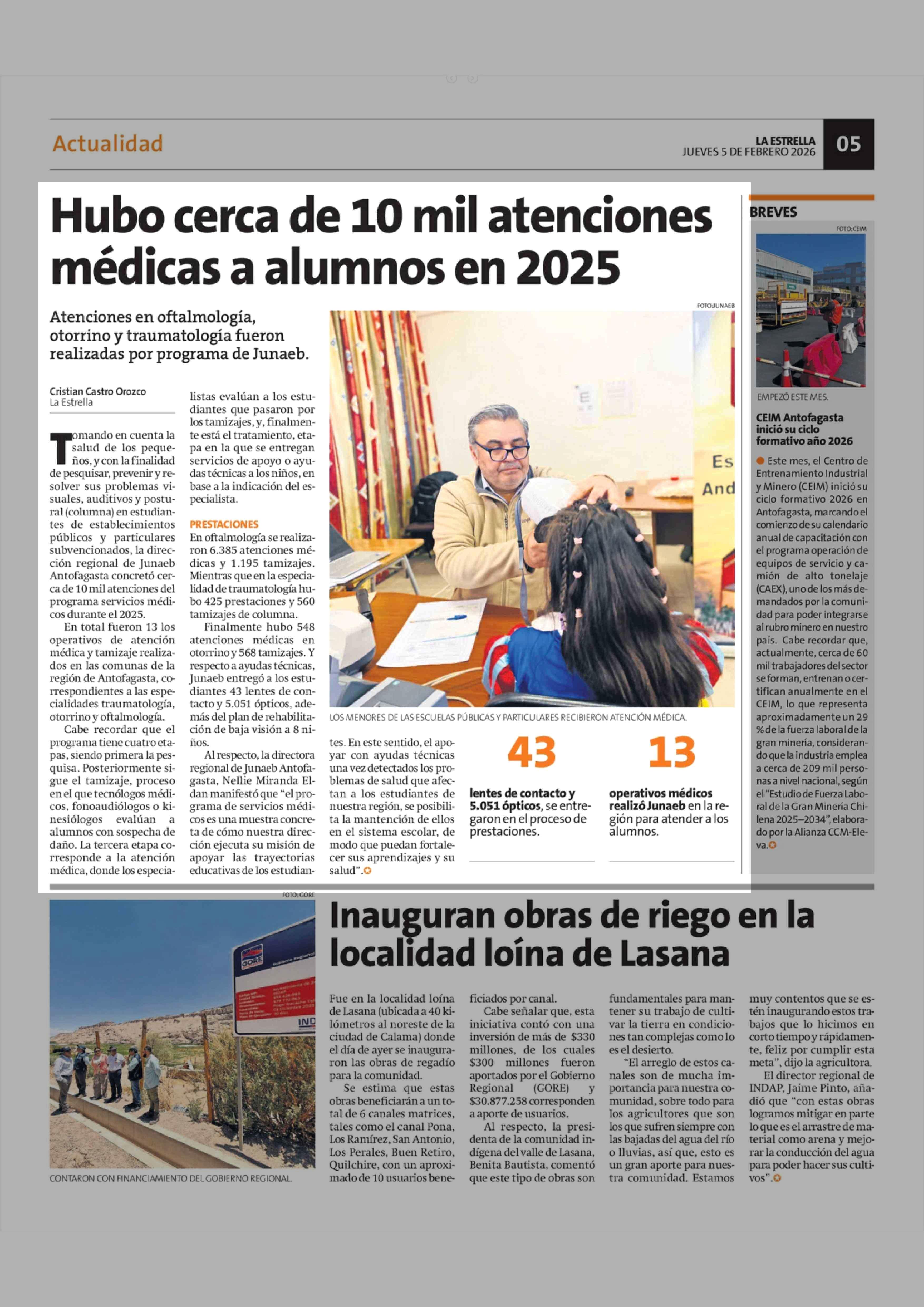 Hubo cerca de 10 mil atenciones médicas a alumnos en 2025 05-02-2026 La Estrella de Antofagasta |