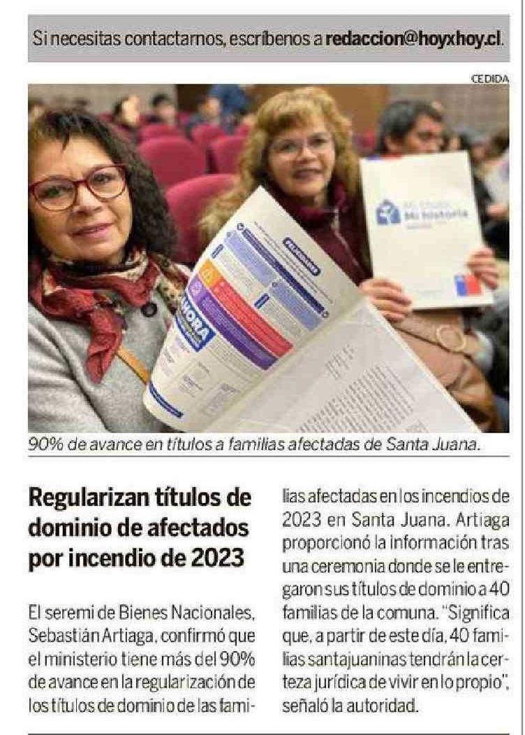 Regularizan títulos de dominio de afectados por incendio de 2023 13-06-2025 Hoy x Hoy Concepción |
