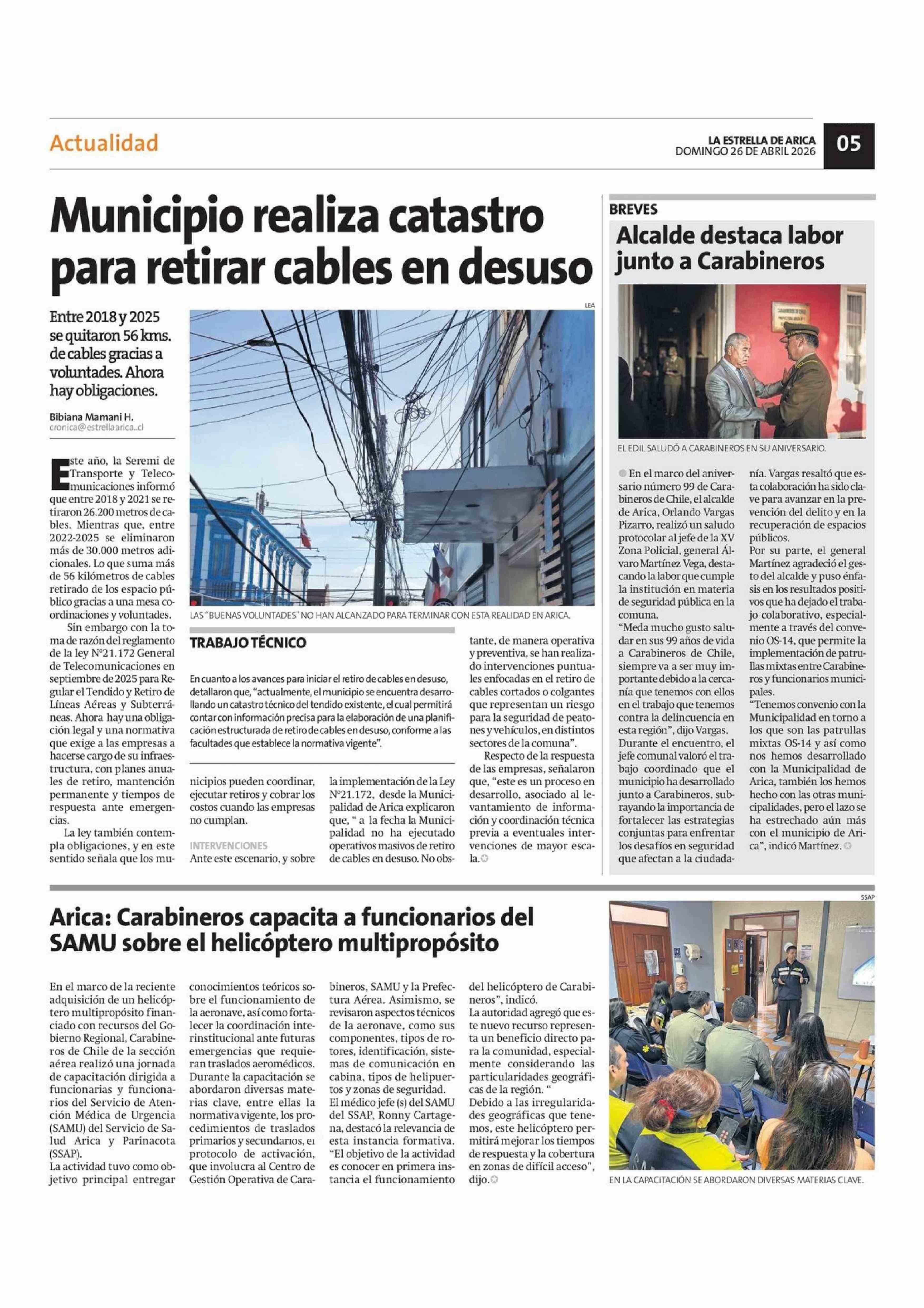 Fecha: 26-04-2026 Sector: Noticia general Región: Región de Arica y Parinacota