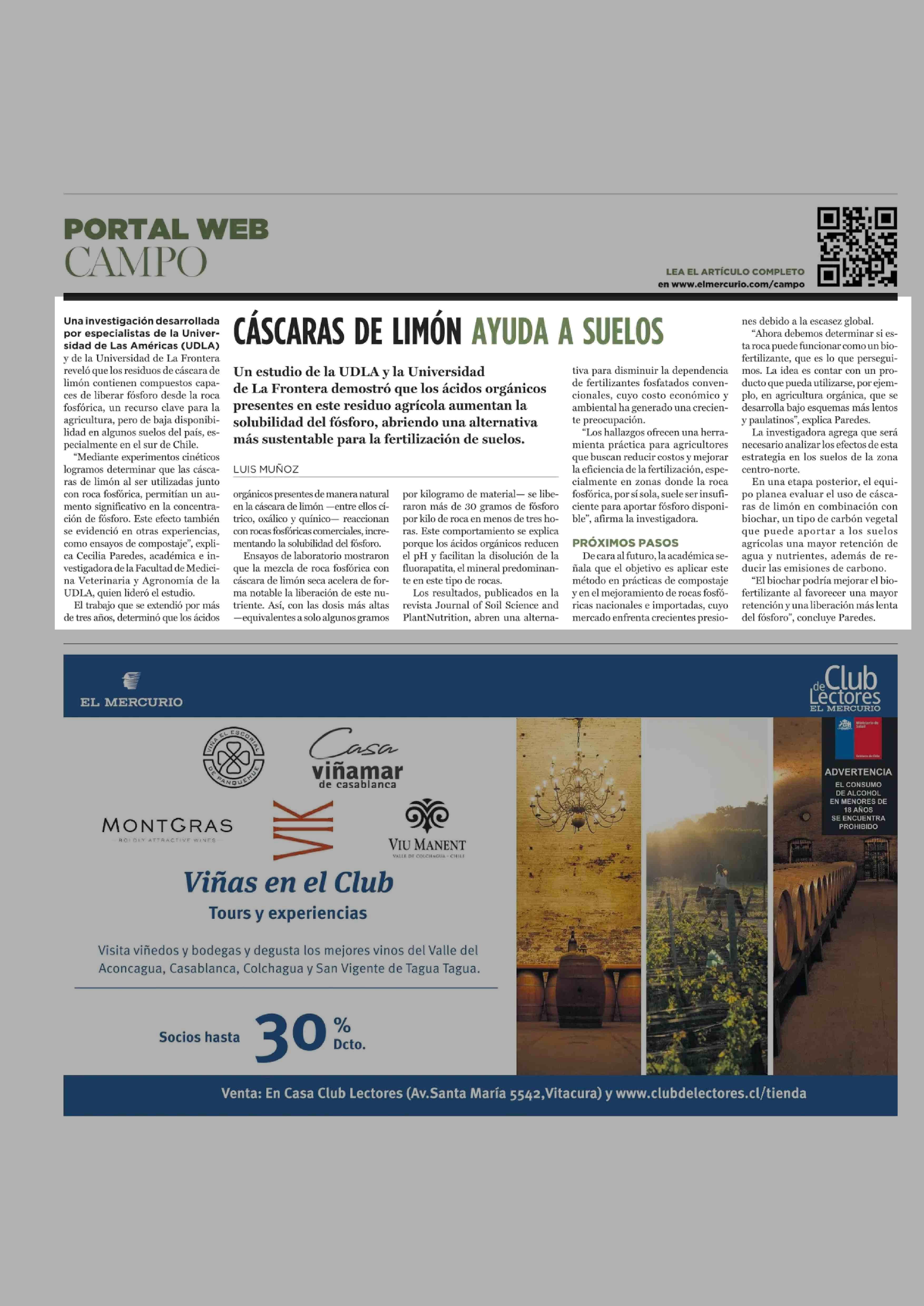 CÁSCARAS DE LIMÓN AYUDA A SUELOS 02-03-2026 El Mercurio |