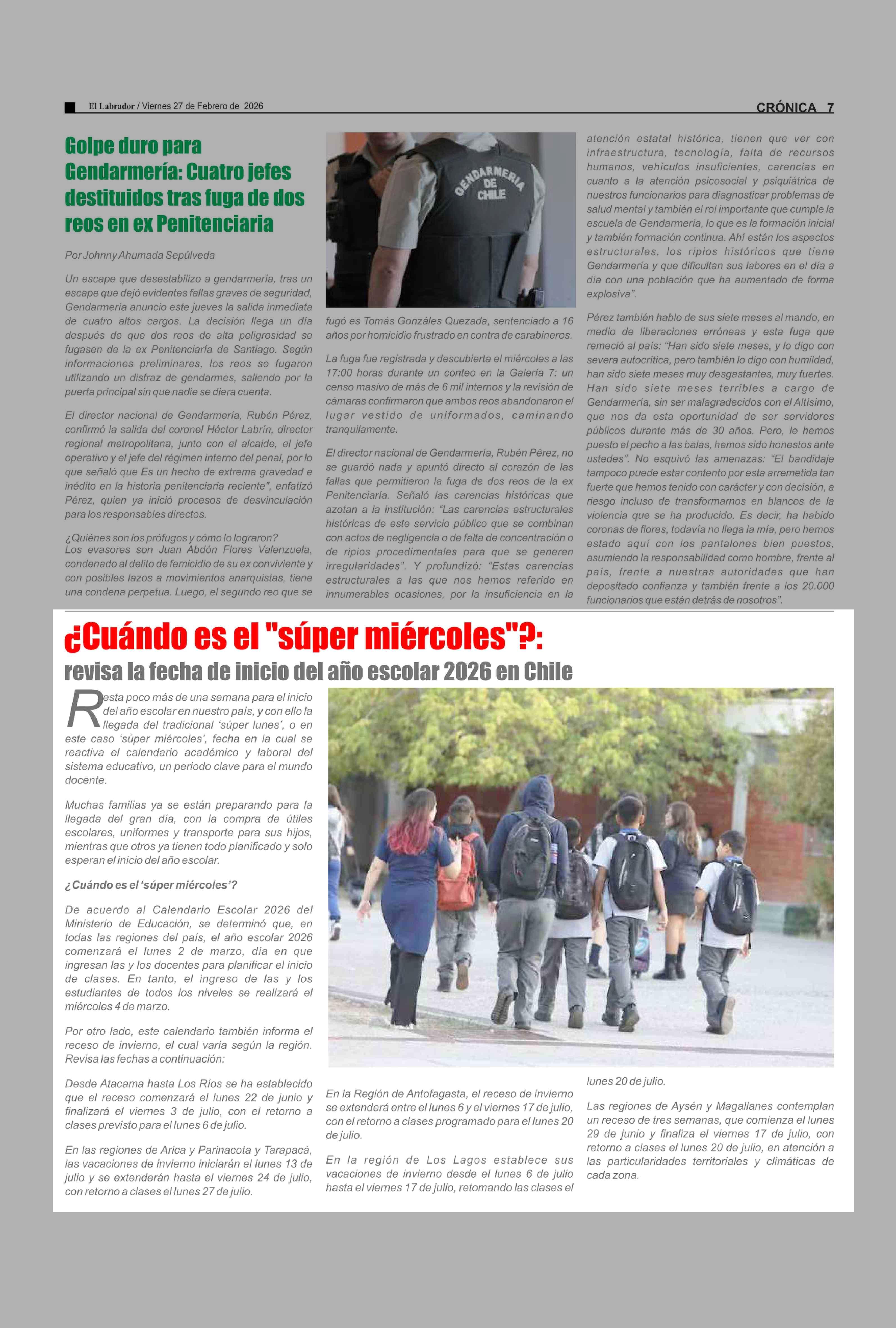 ¿Cuándo es el "súper miércoles" ?: revisa la fecha de inicio del año escolar 2026 en Chile 27-02-2026 El Labrador |
