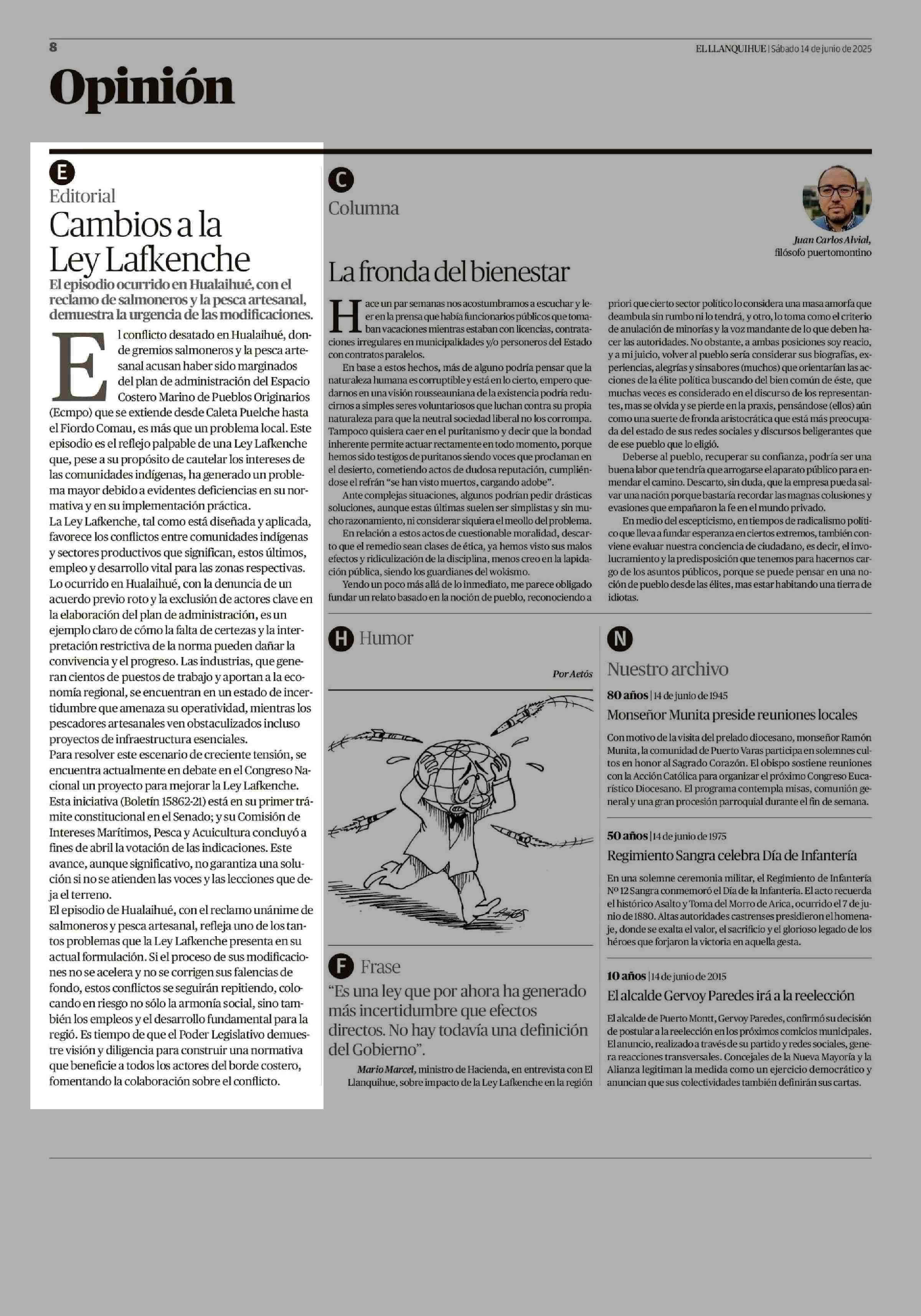 Editorial: Cambios a la Ley Lafkenche 14-06-2025 El Llanquihue |