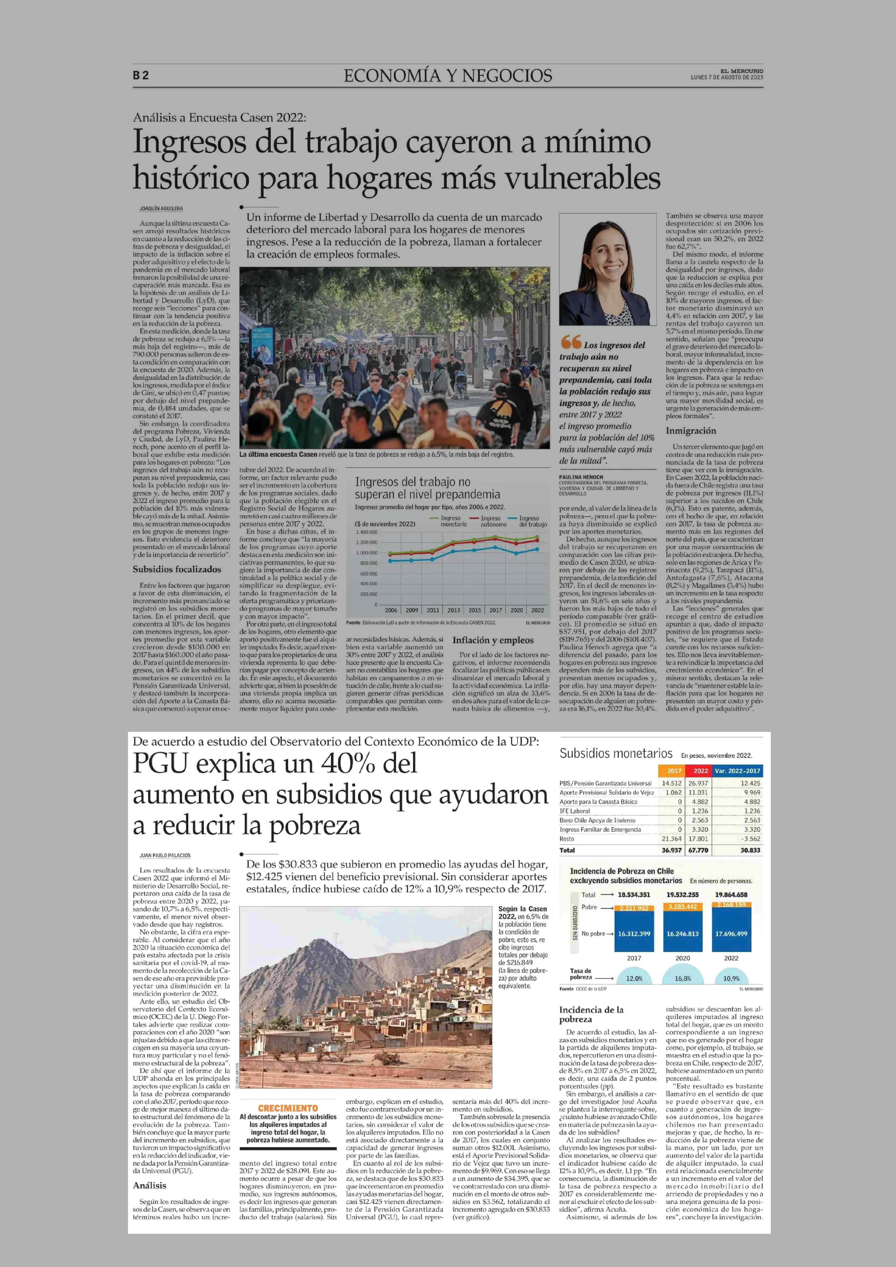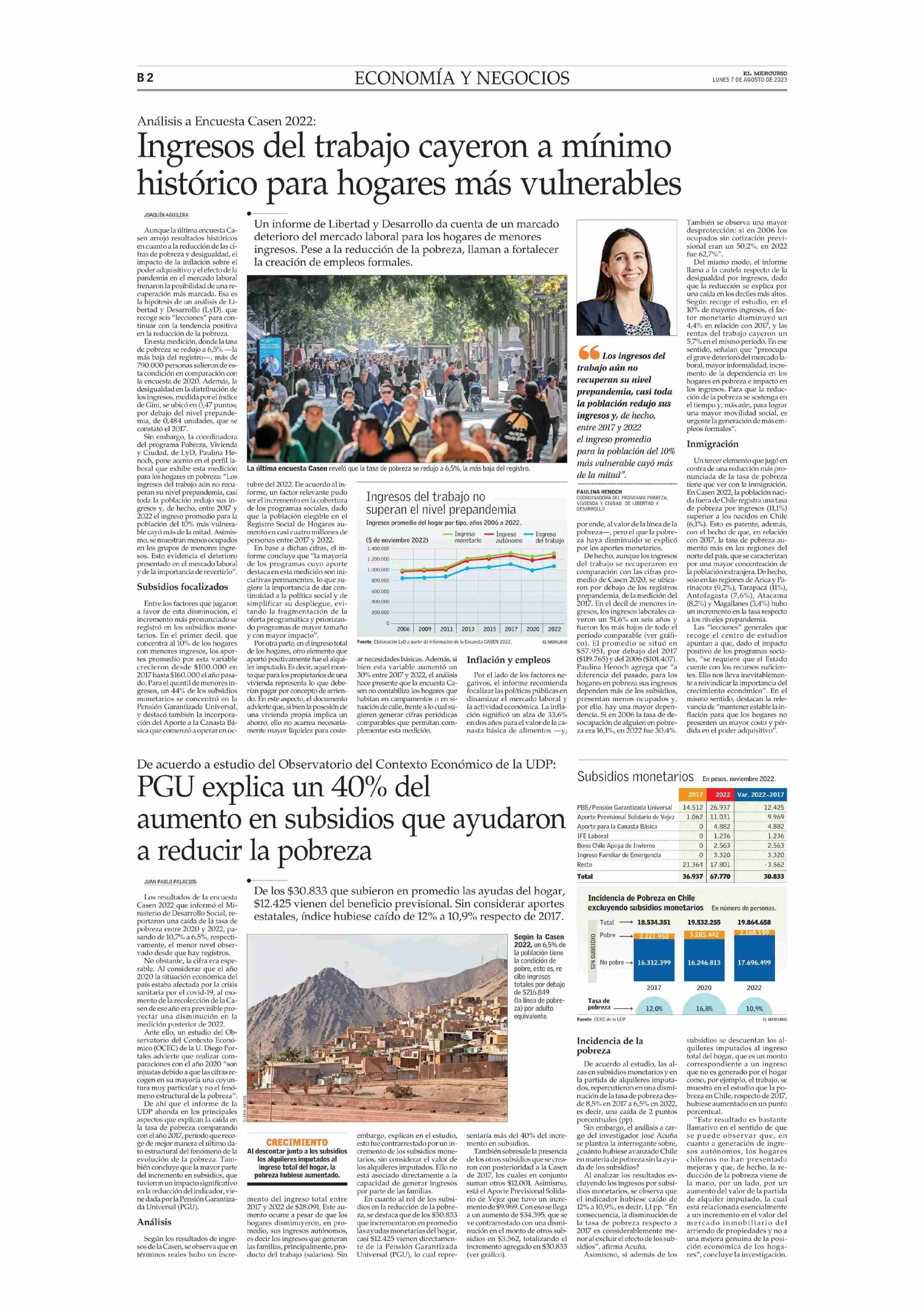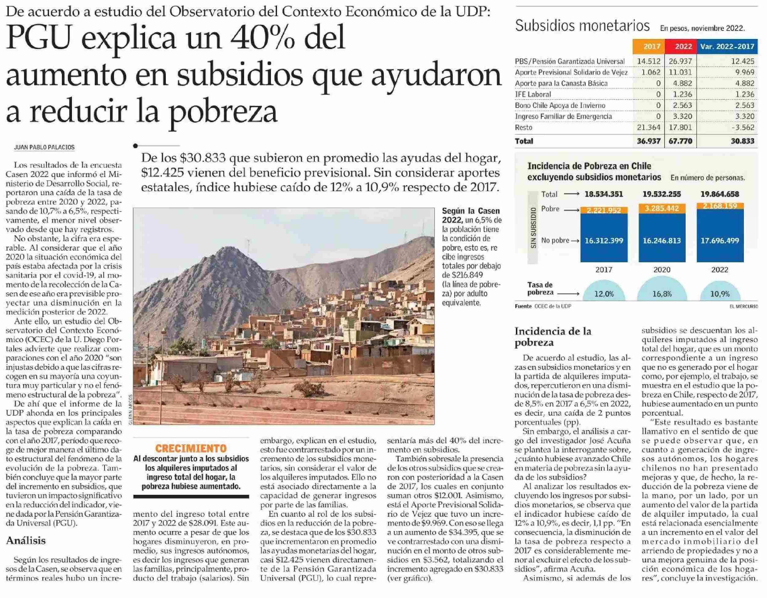 PGU explica un 40% del aumento en subsidios que ayudaron a reducir la pobreza 07-08-2023 El Mercurio |