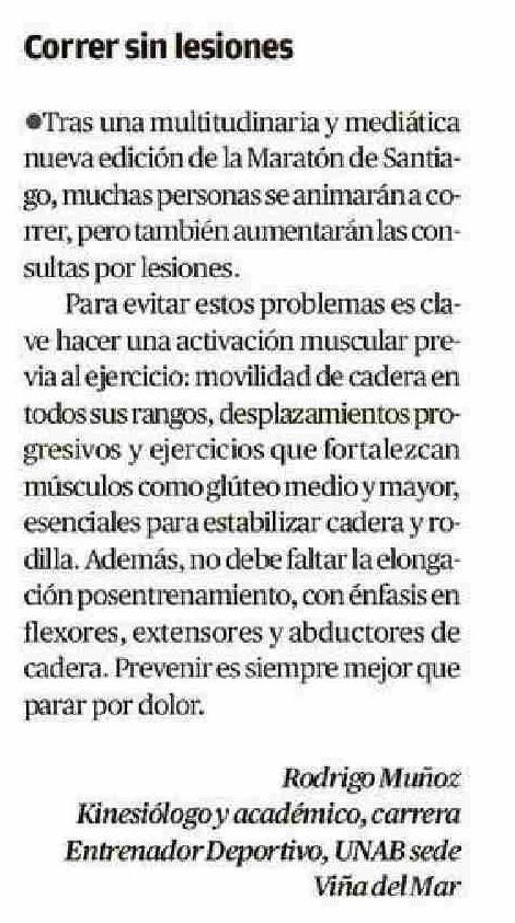 CARTAS: Correr sin lesiones 26-05-2025 El Mercurio de Valparaíso |