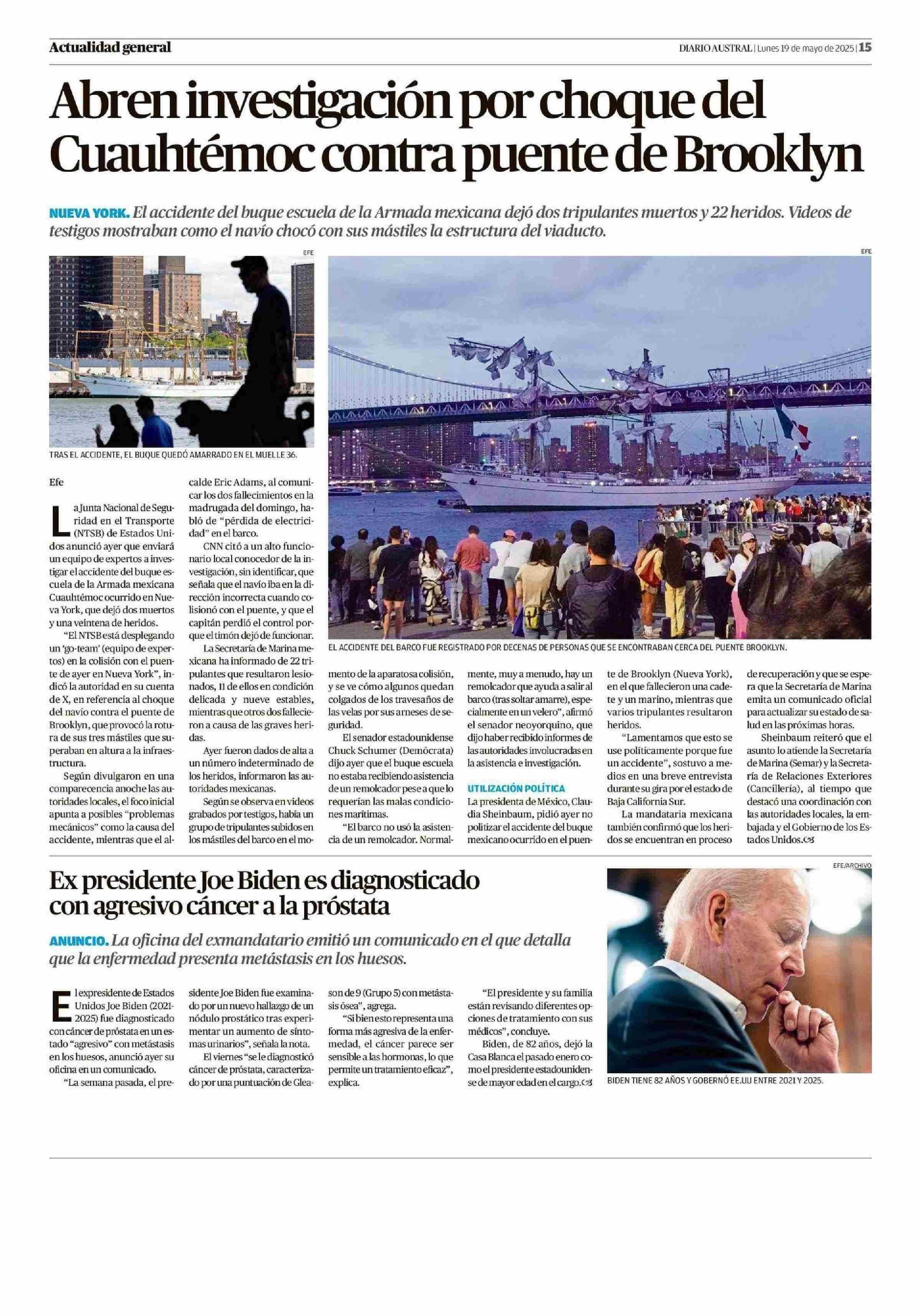 Ex presidente Joe Biden es diagnosticado con agresivo cáncer a la próstata 19-05-2025 Diario Austral Región de Los Ríos |