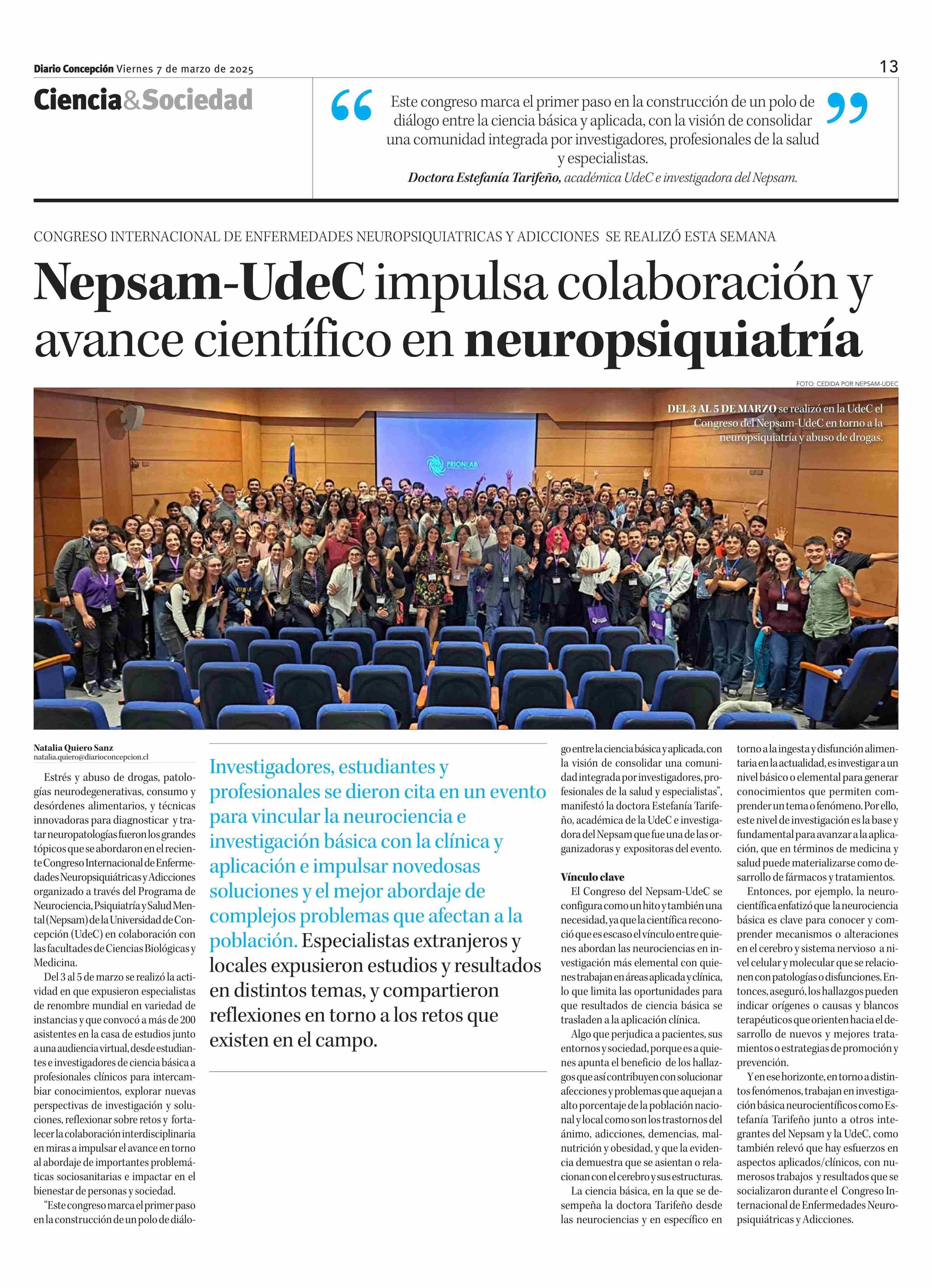 Nepsam-UdeC impulsa colaboración y avance científico en neuropsiquiatría 07-03-2025 Diario Concepción |
