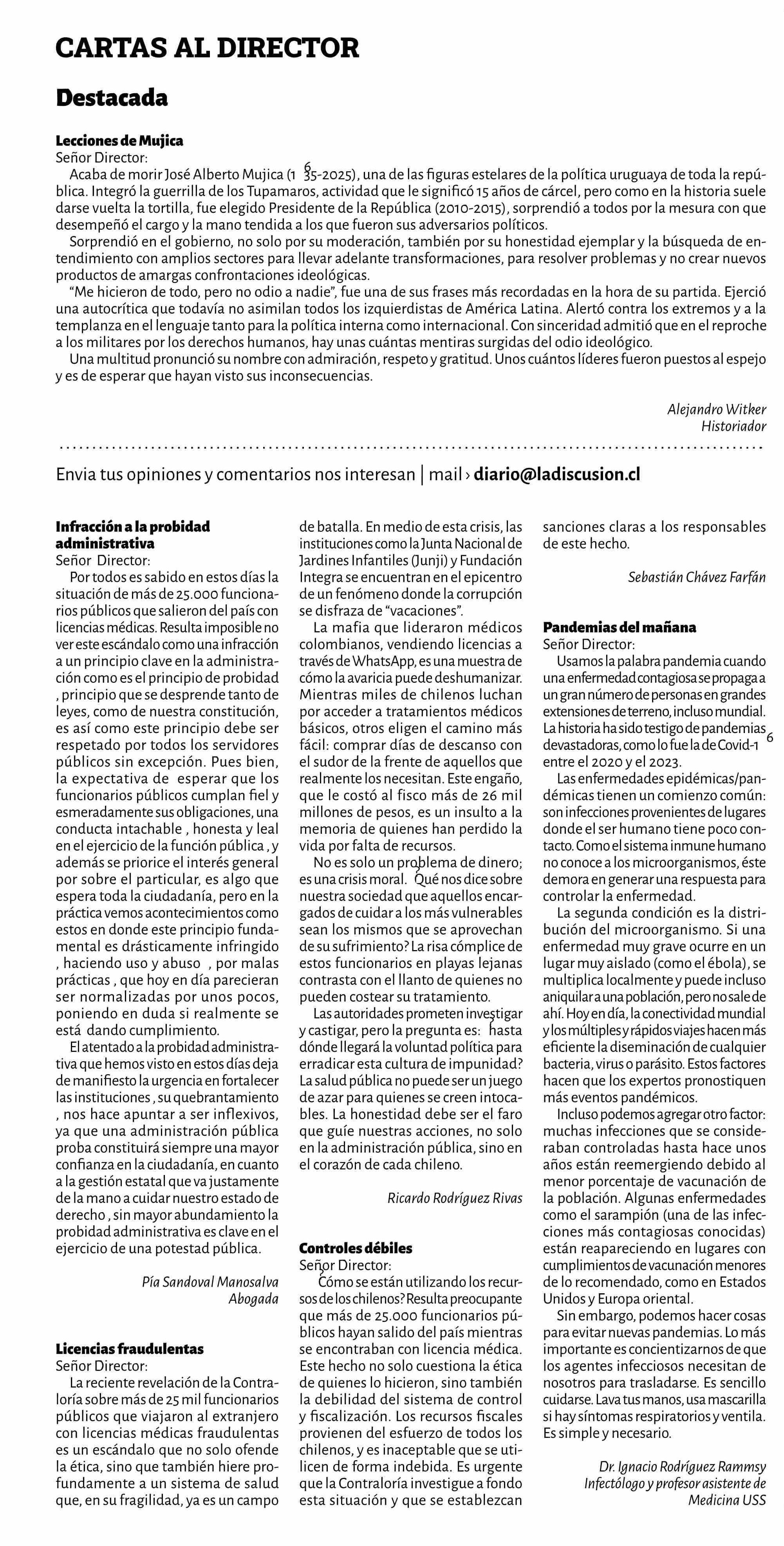 CARTAS AL DIRECTOR 24-05-2025 La Discusión |