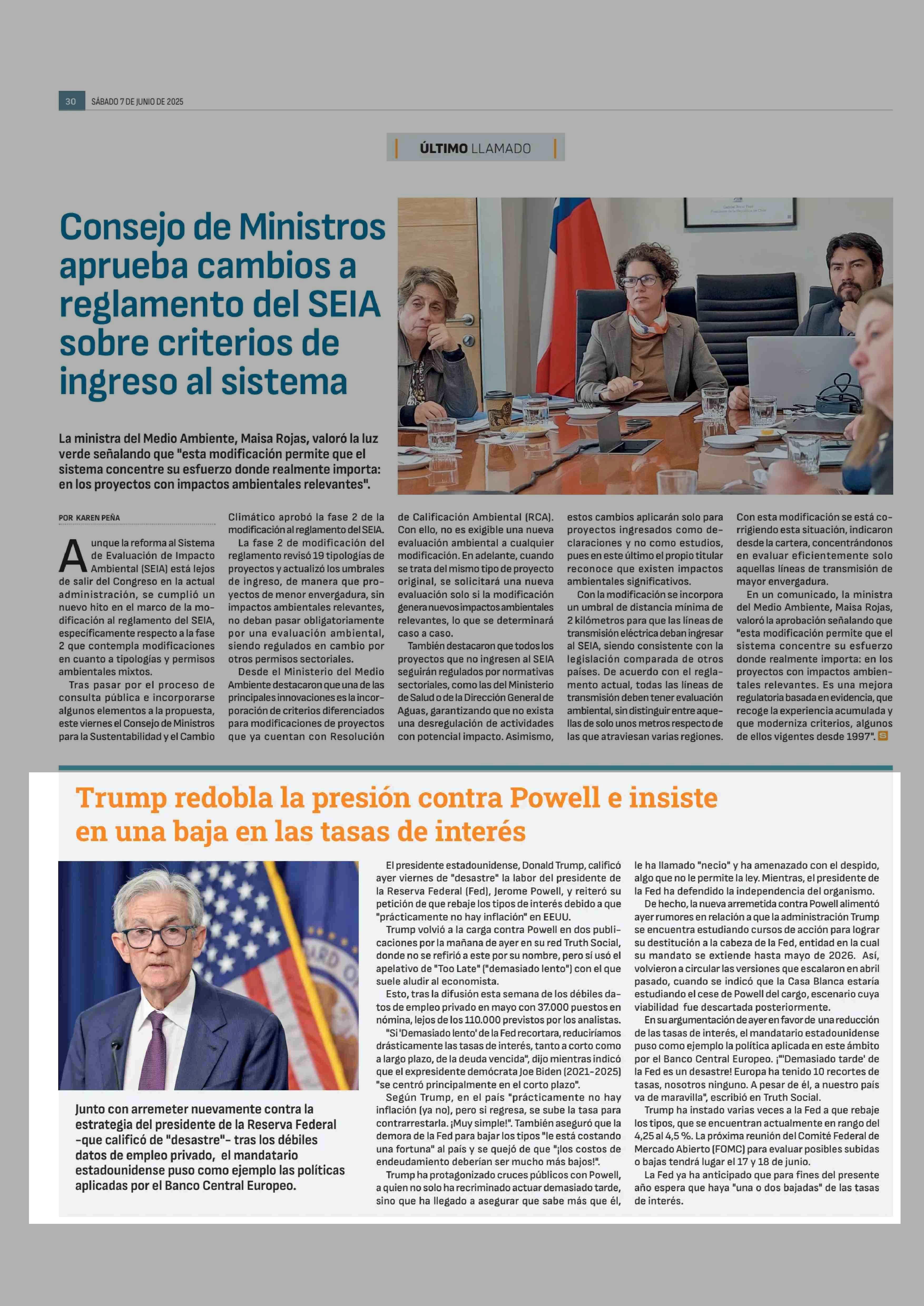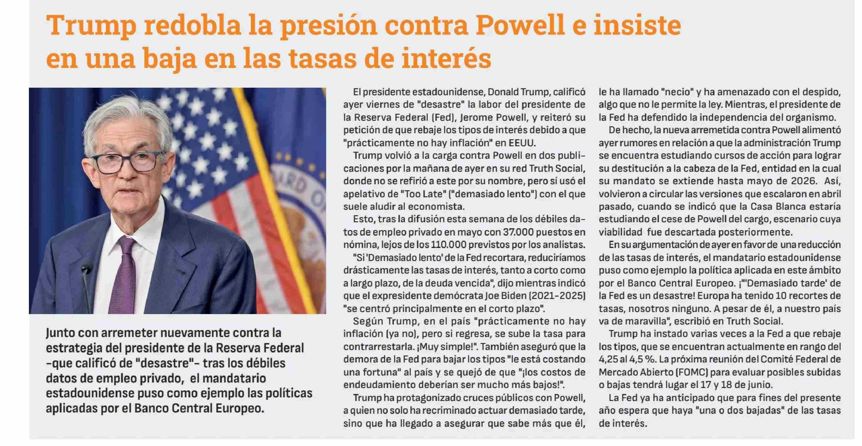 Trump redobla la presión contra Powell e insiste en una baja en las tasas de interés 07-06-2025 Diario Financiero |