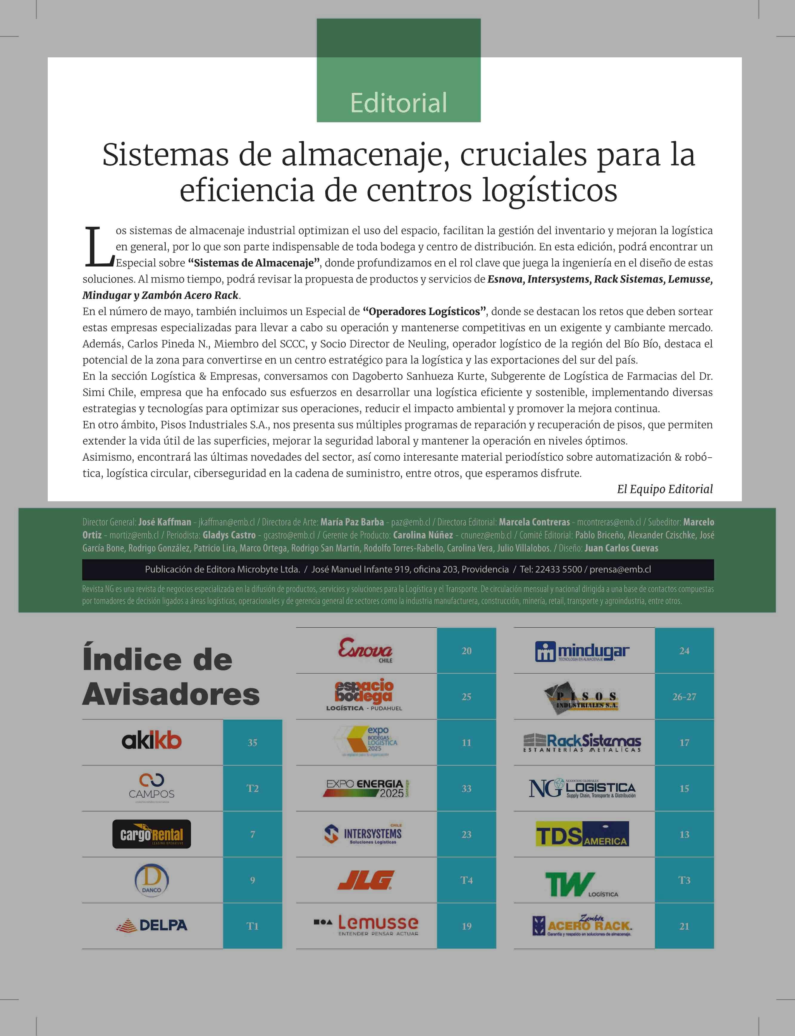 EDITORIAL: Sistemas de almacenaje, cruciales para la eficiencia de centros logísticos 23-05-2025 Revista NG |