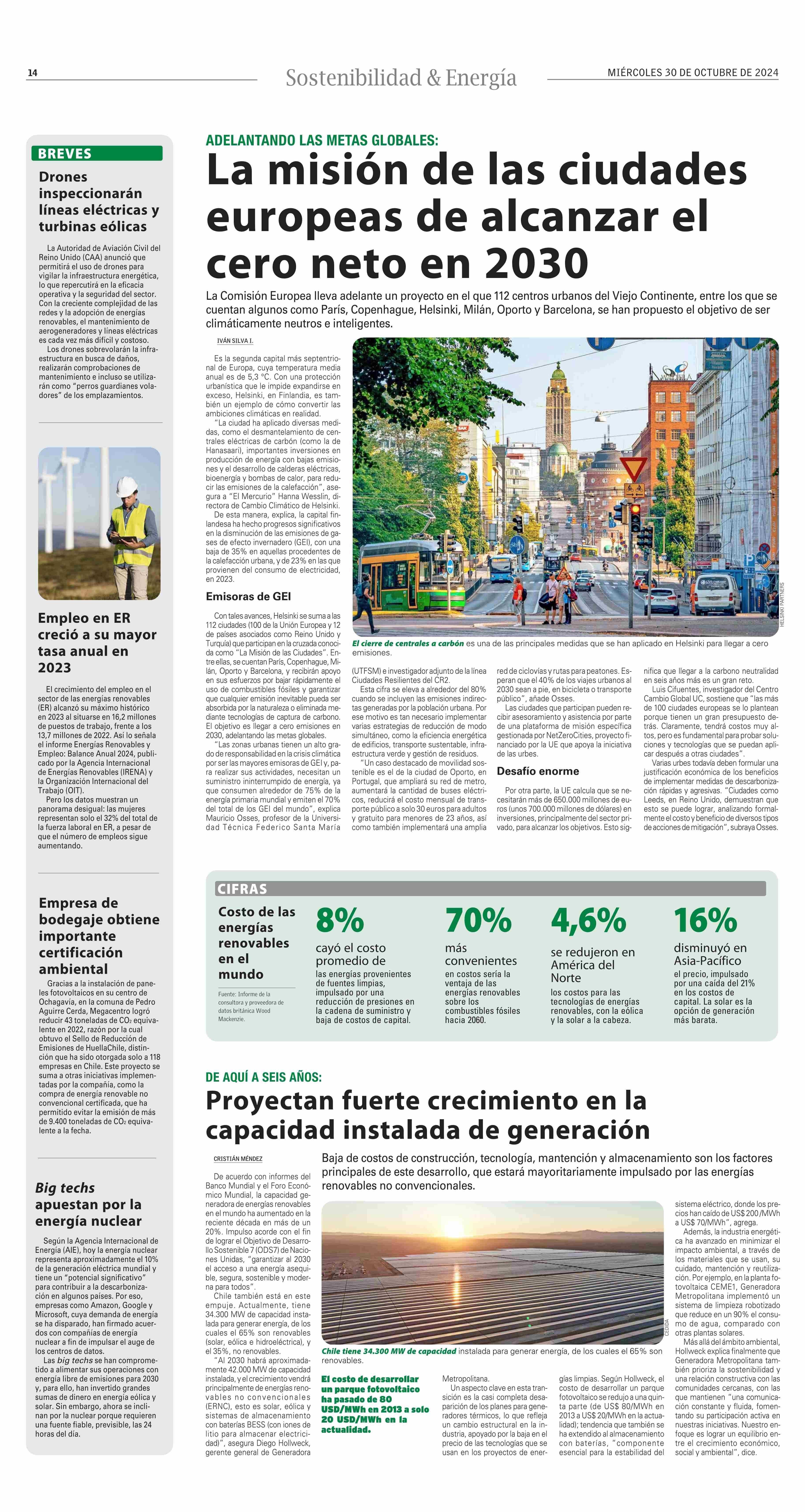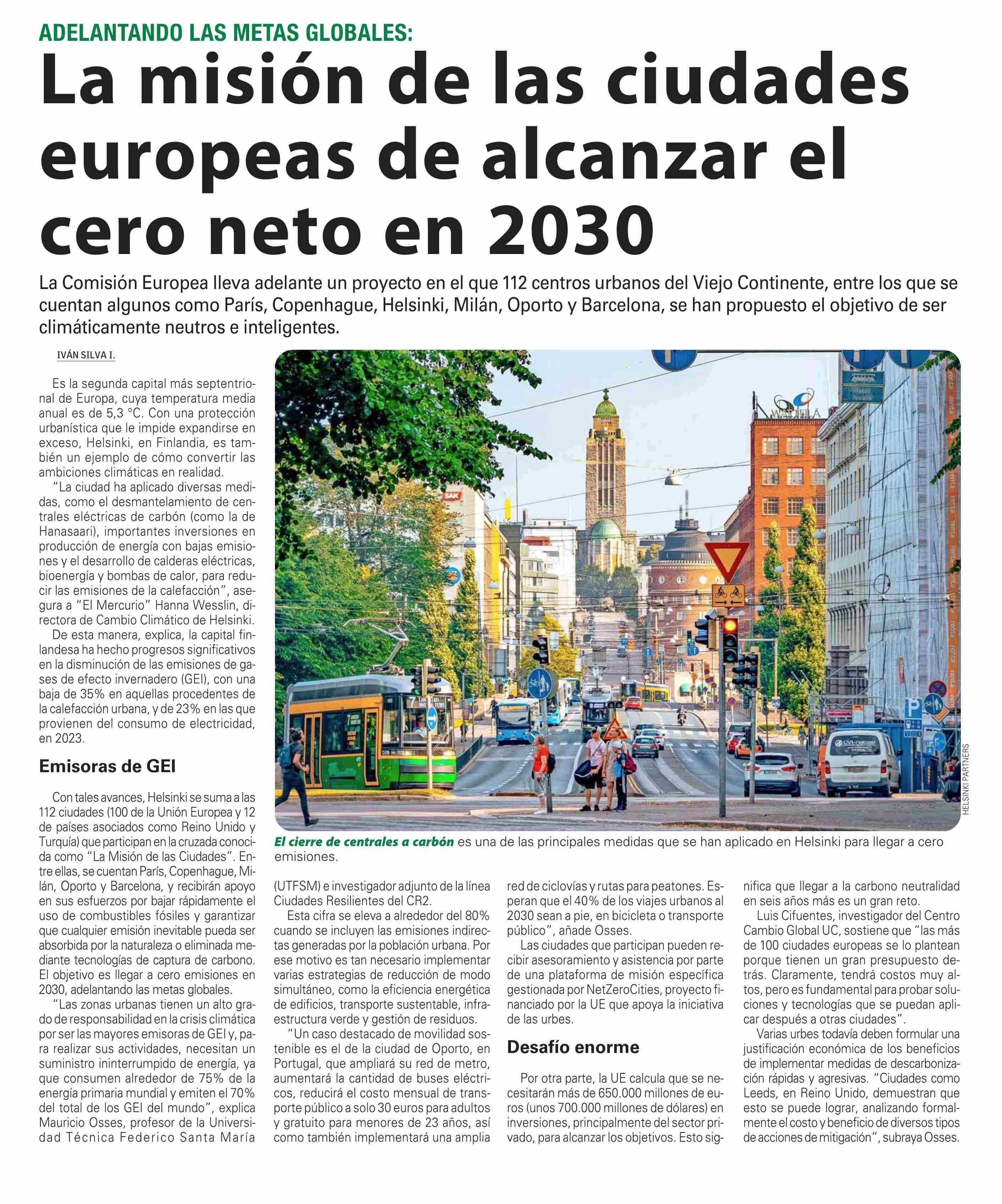 La misión de las ciudades europeas de alcanzar el cero neto en 2030 30-10-2024 El Mercurio |