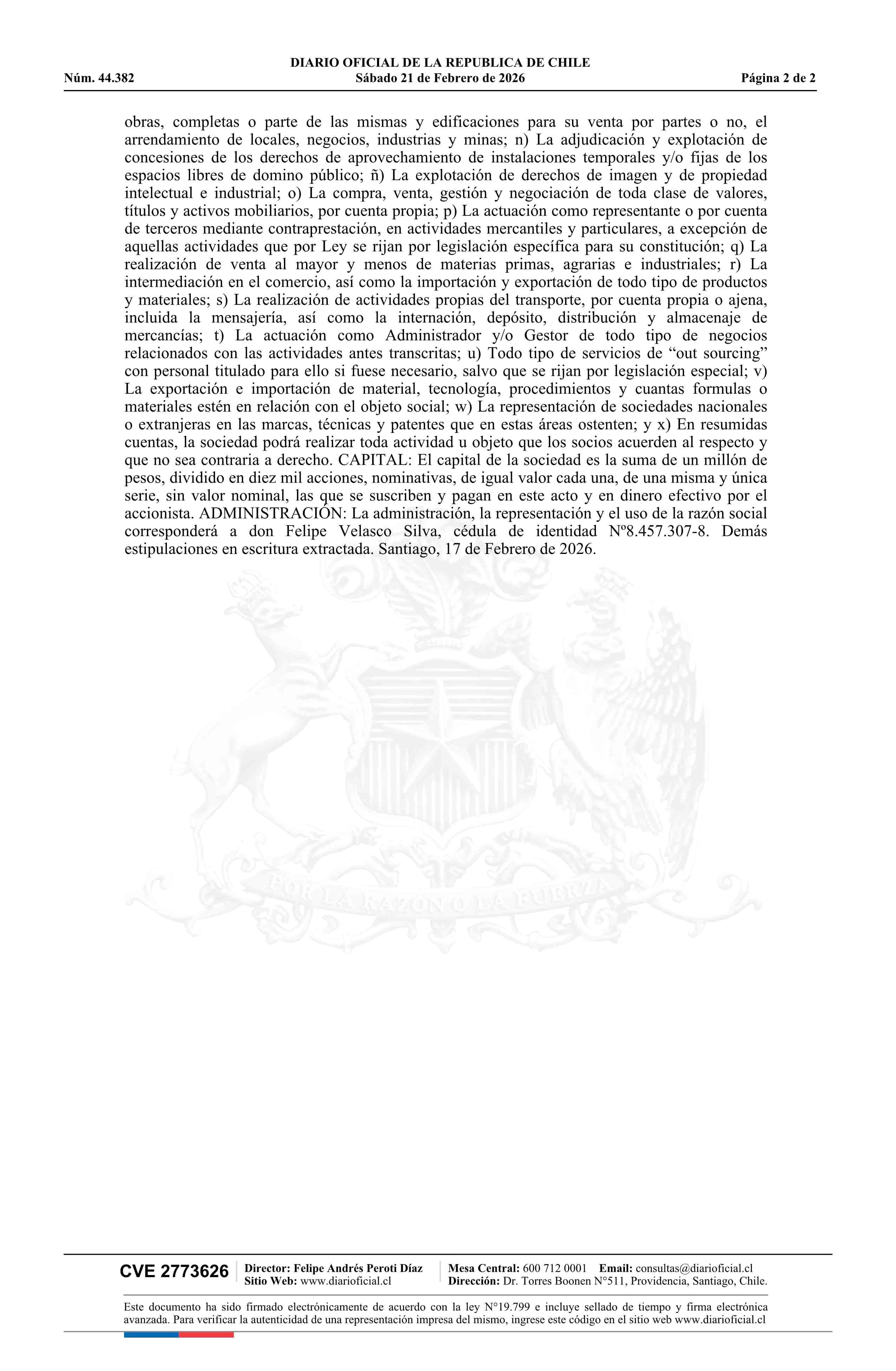 VITELVO SpA 21-02-2026 Diario Oficial Edición Electrónica |