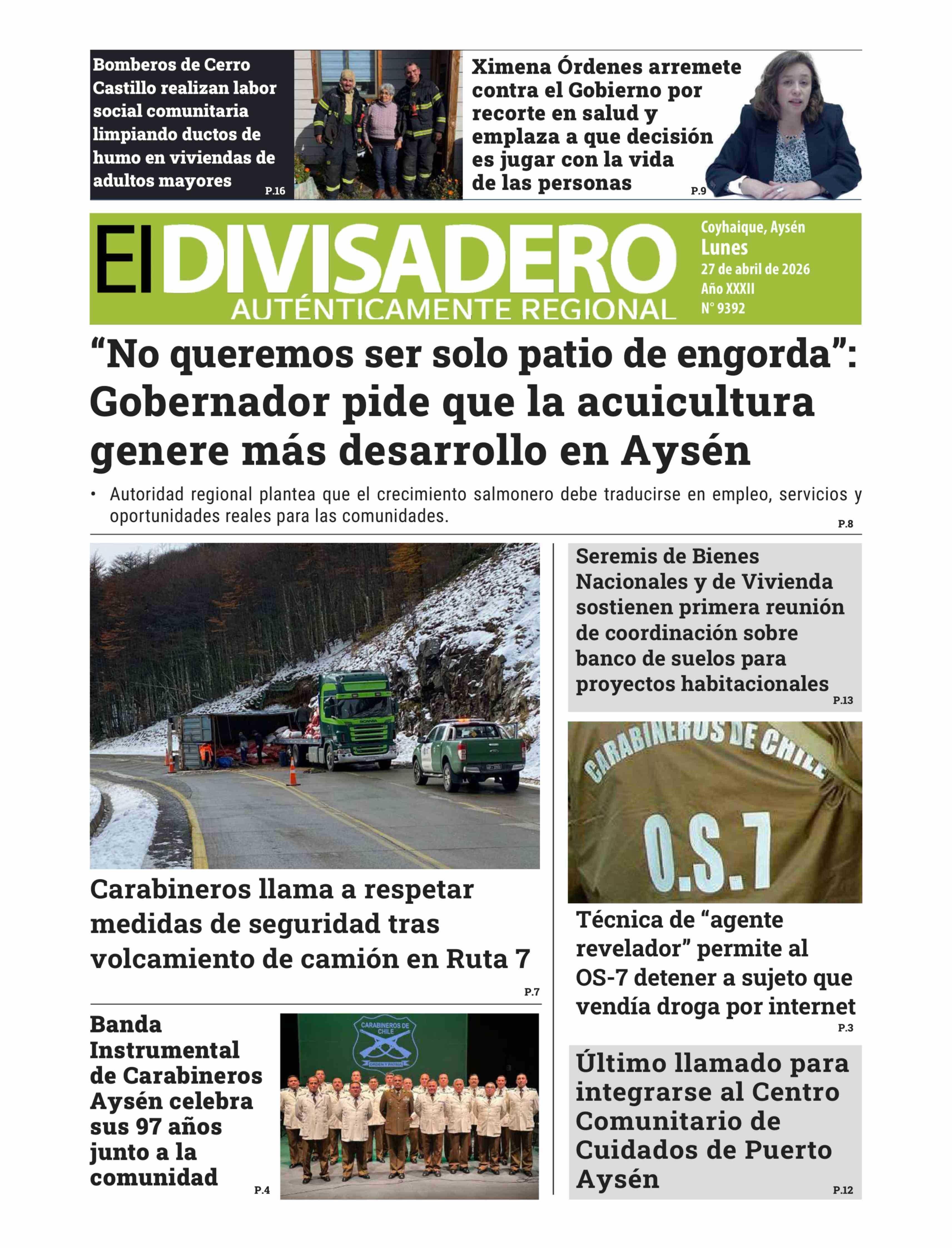 | Fecha: | 27-04-2026 | Sector: | Portada | Región: | Región Aysén del General Carlos Ibáñez del Campo |