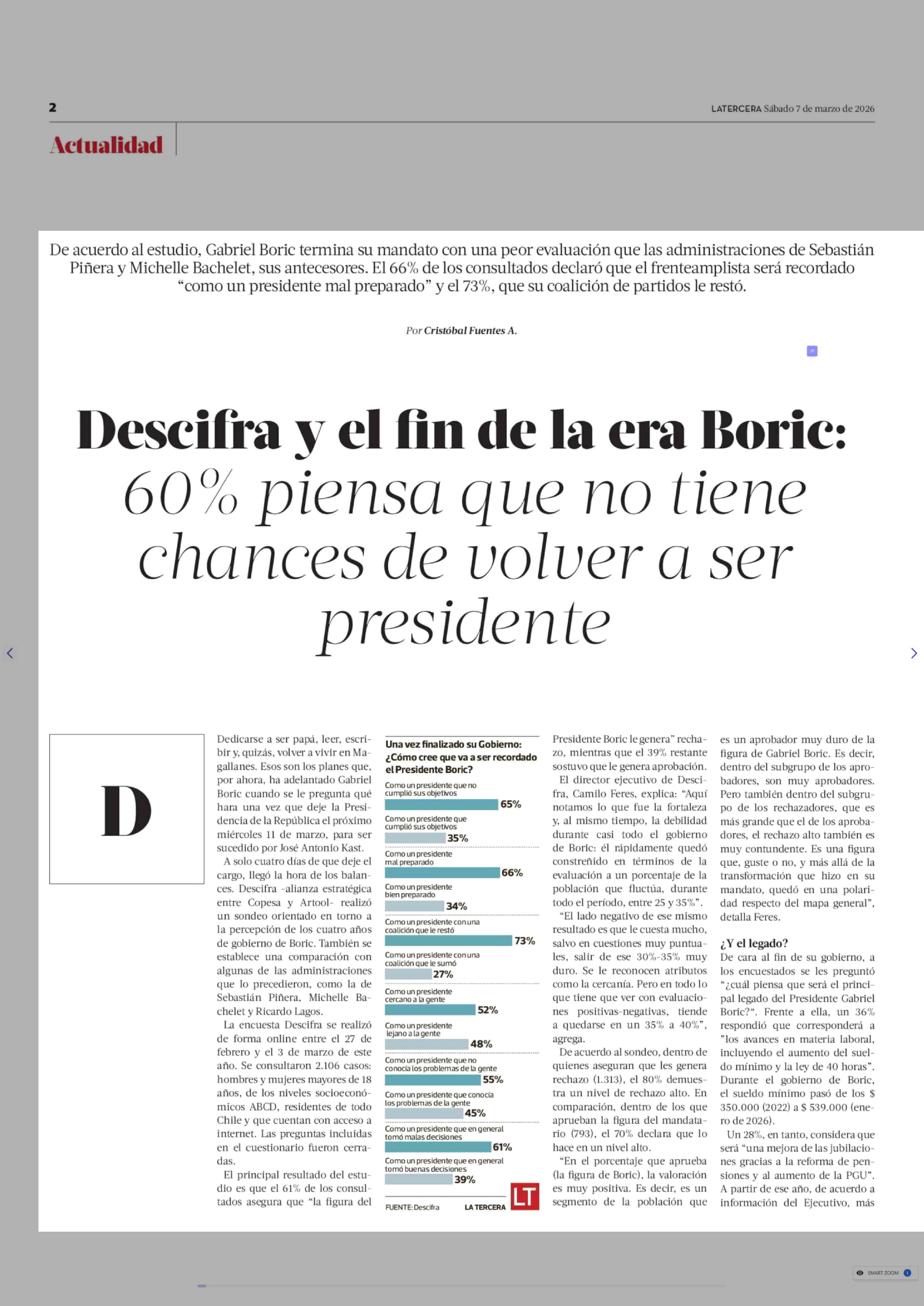 Título: Descifra y el fin de la era Boric: 60% piensa que no tiene chances de volver a ser presidente