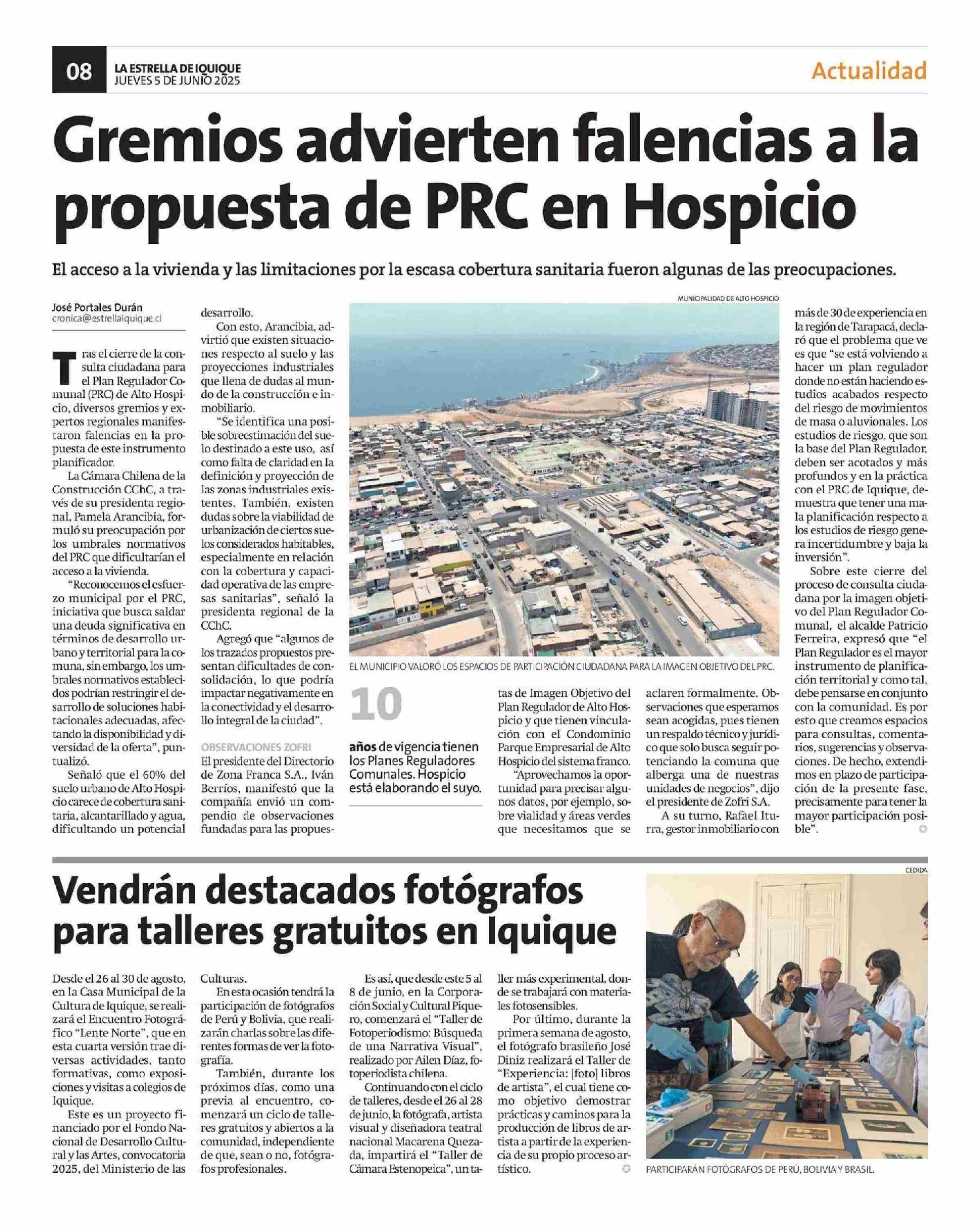La Gremios advierten falencias a propuesta de PRC en Hospicio 05-06-2025 La Estrella de Iquique |