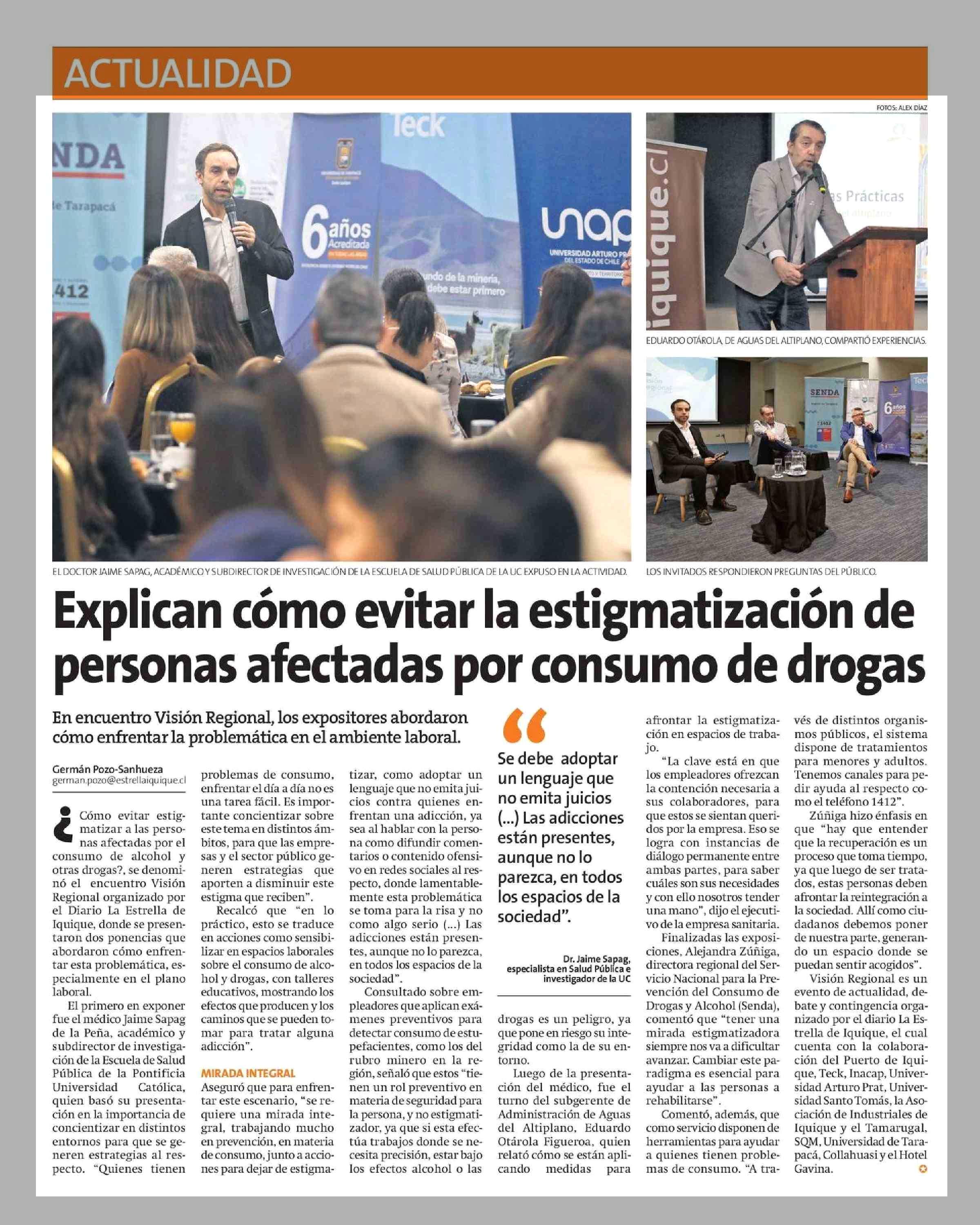 Explican cómo evitar la estigmatización de ersonas afectadas por consumo de drogas 07-11-2024 La Estrella de Iquique |