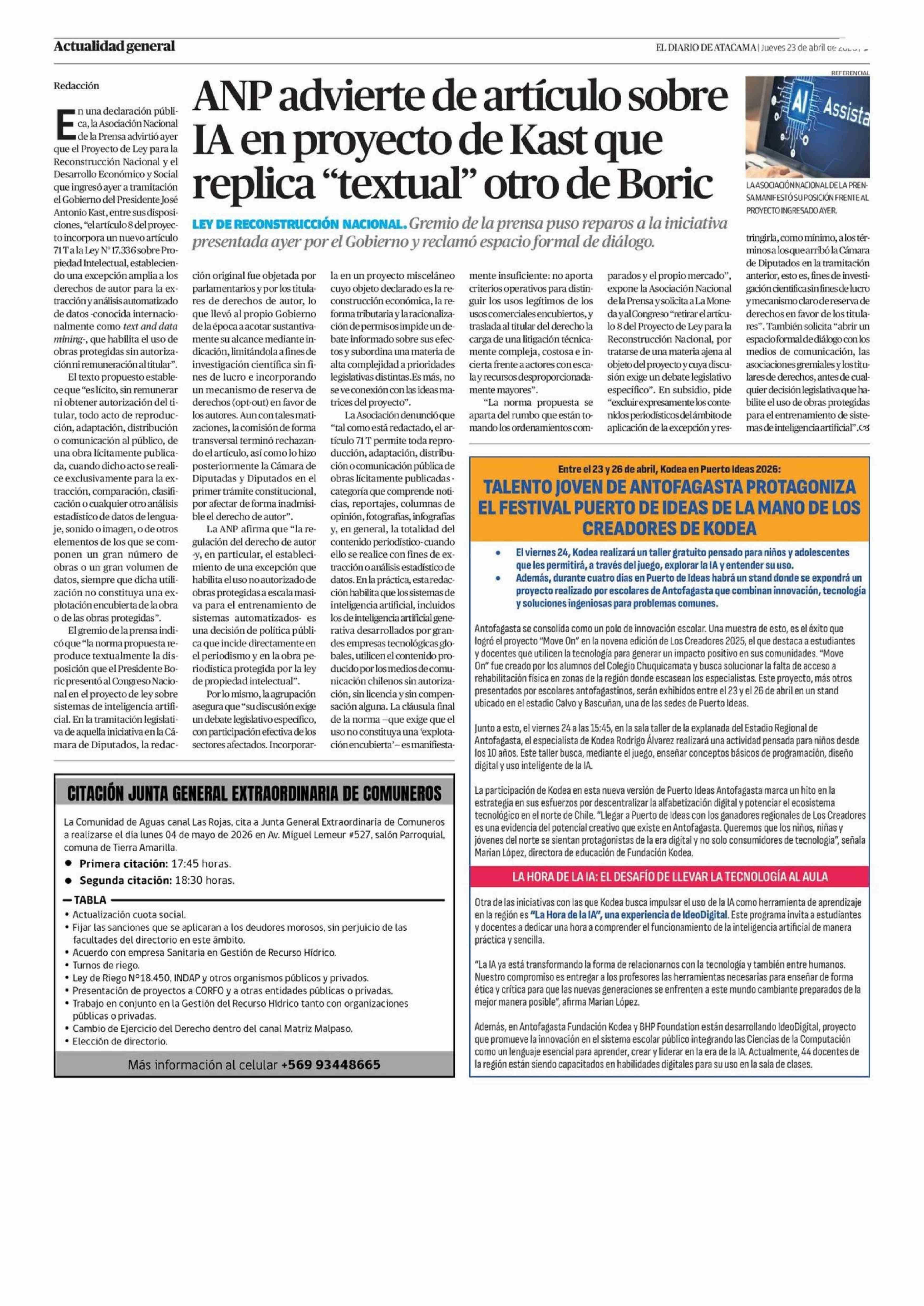 | Fecha: | 23-04-2026 | Sector: | Noticia general | Región: | Región de Atacama |