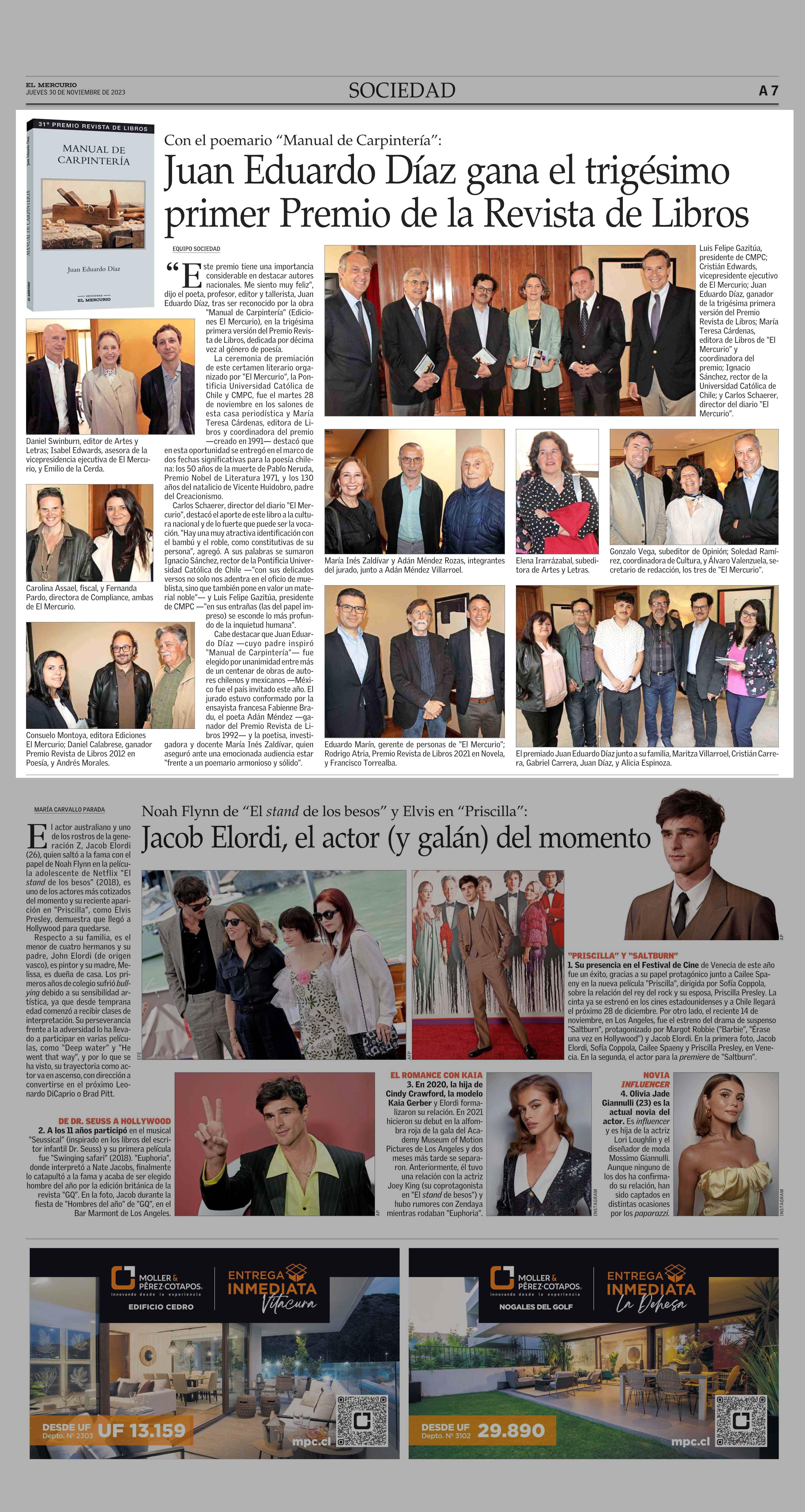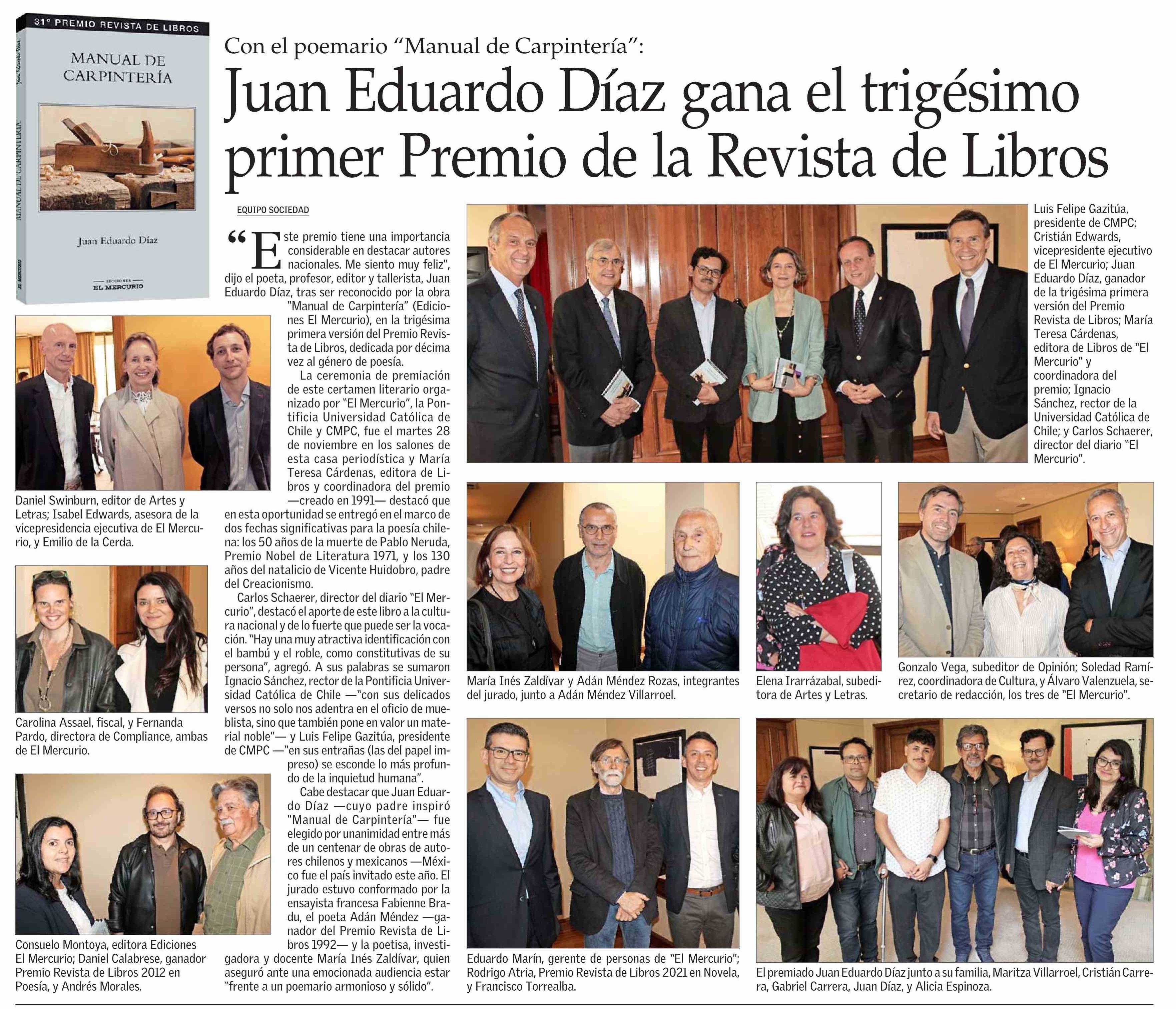 Juan Eduardo Díaz gana el trigésimo primer Premio de la Revista de Libros 30-11-2023 El Mercurio |