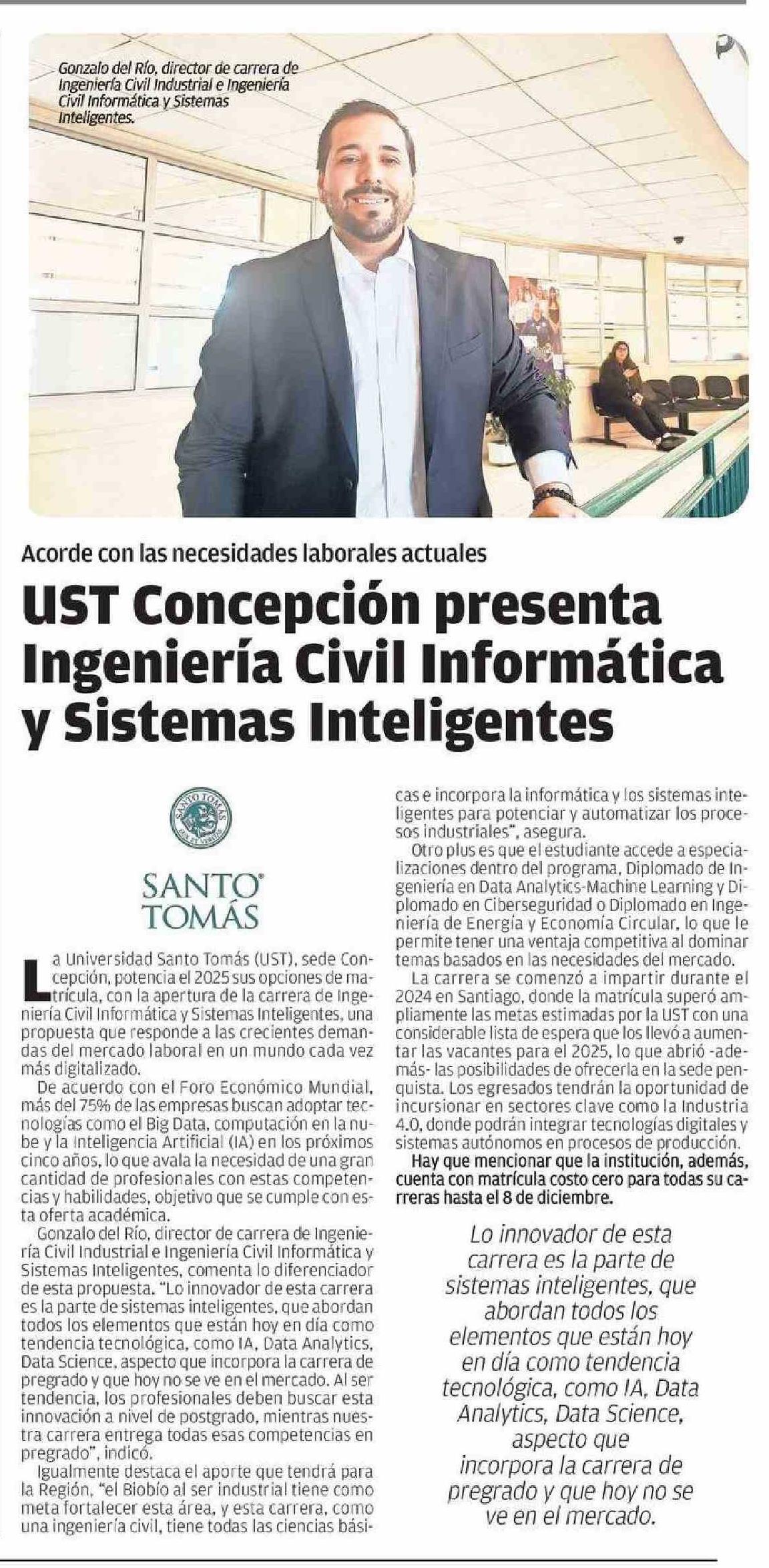 UST Concepción presenta Ingeniería Civil Informática y Sistemas Inteligentes 28-11-2024 El Sur |