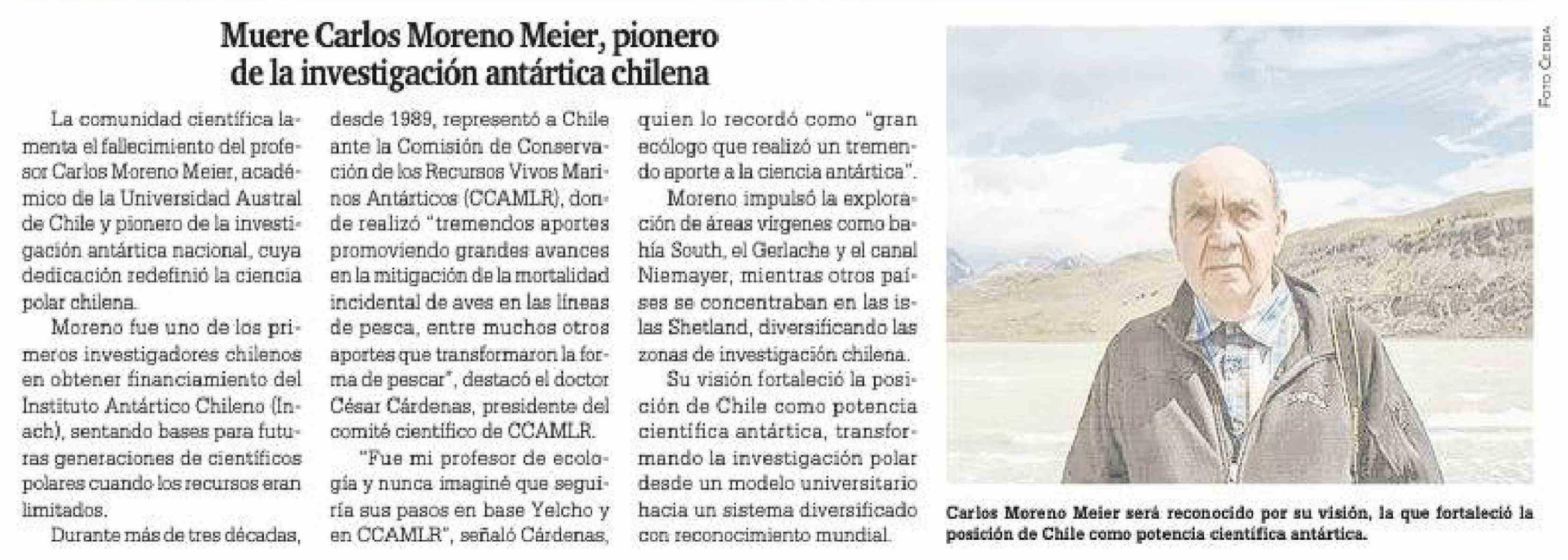 | Título: | Muere Carlos Moreno Meier, pionero de la investigación antártica chilena |