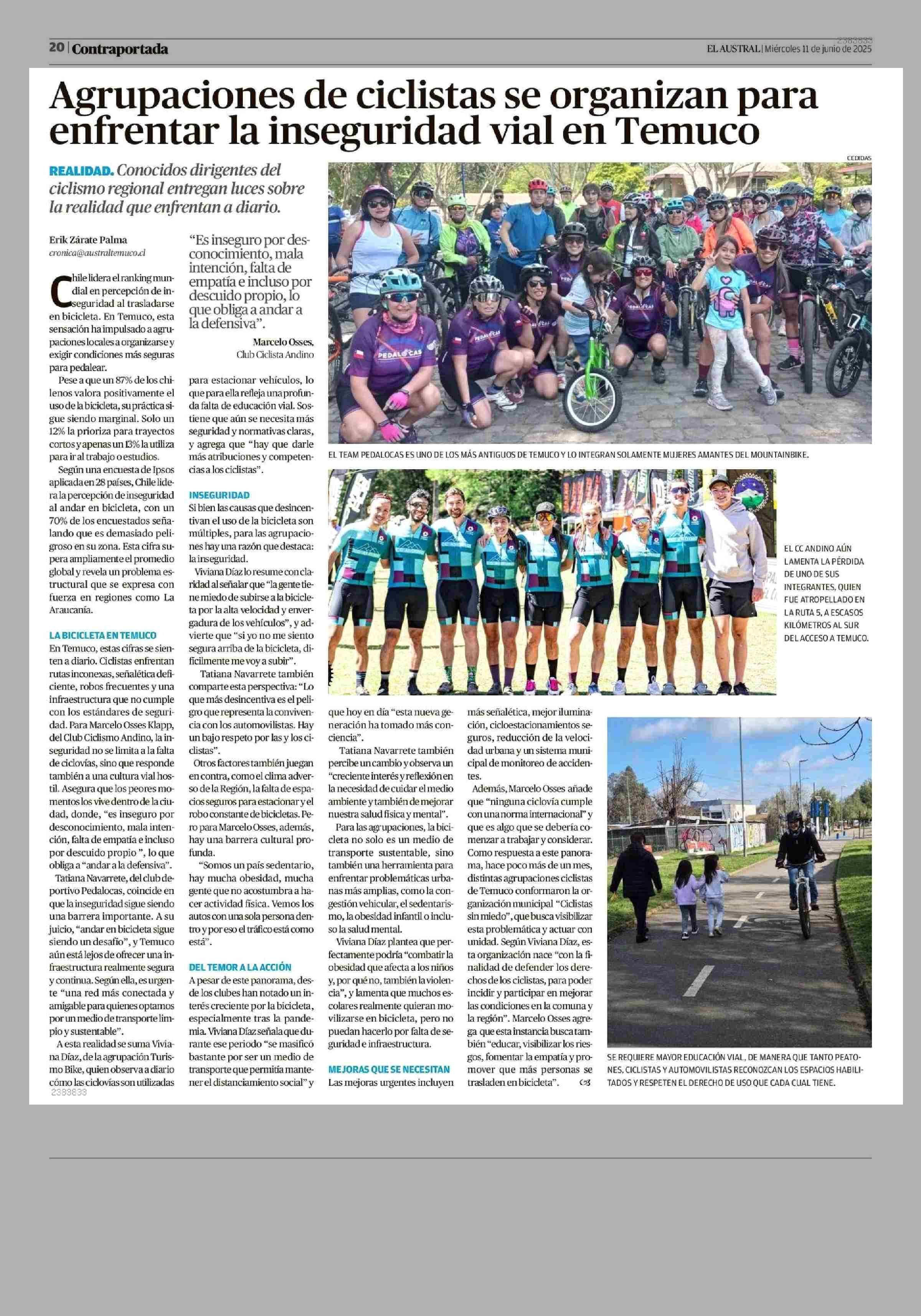 Agrupaciones de ciclistas se organizan para enfrentar la inseguridad vial en Temuco 11-06-2025 El Austral de la Araucanía |