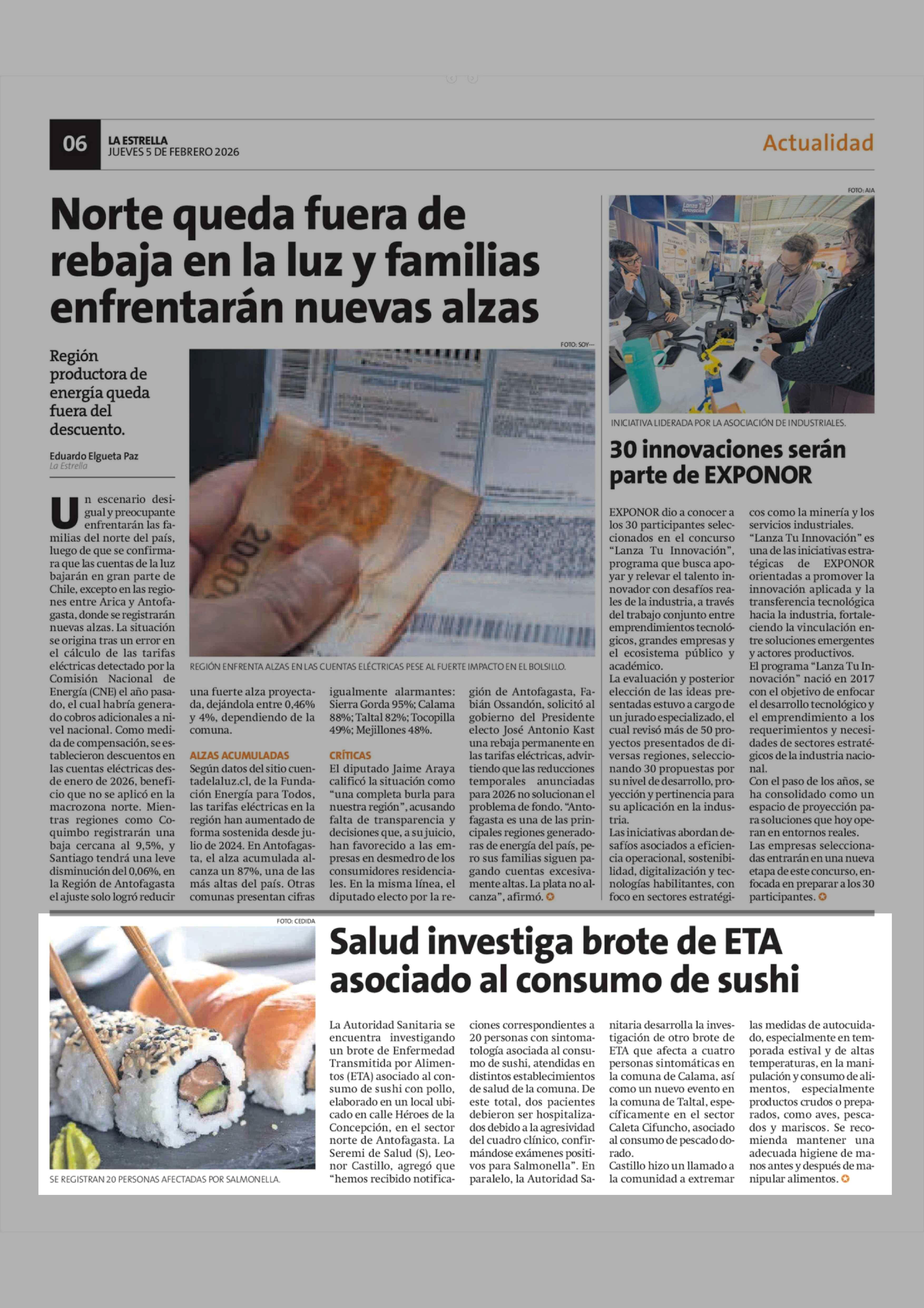 Salud investiga brote de ETA asociado al consumo de sushi 05-02-2026 La Estrella de Antofagasta |
