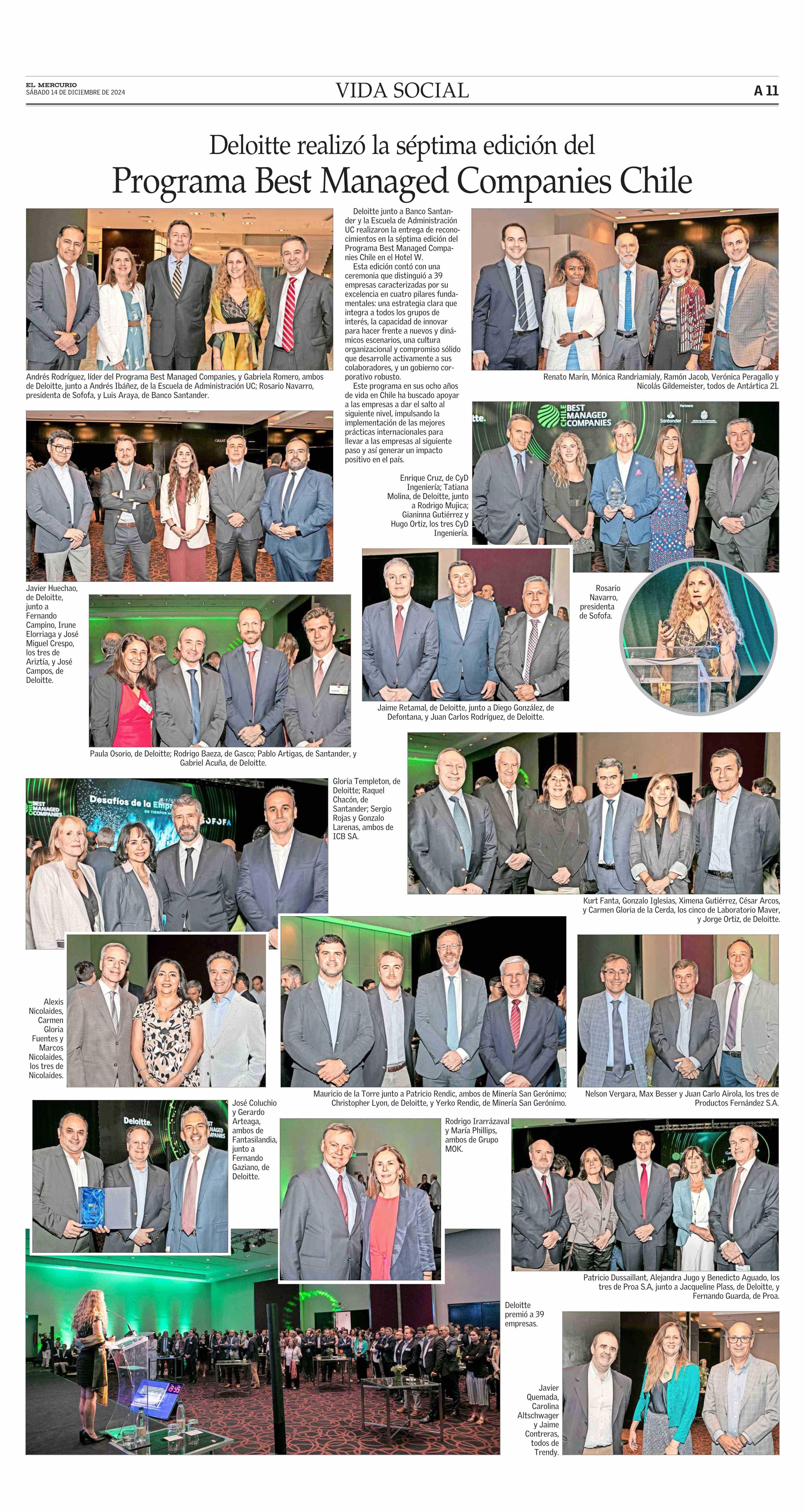 Deloitte realizó la séptima edición del Programa Best Managed Companies Chile 14-12-2024 El Mercurio |