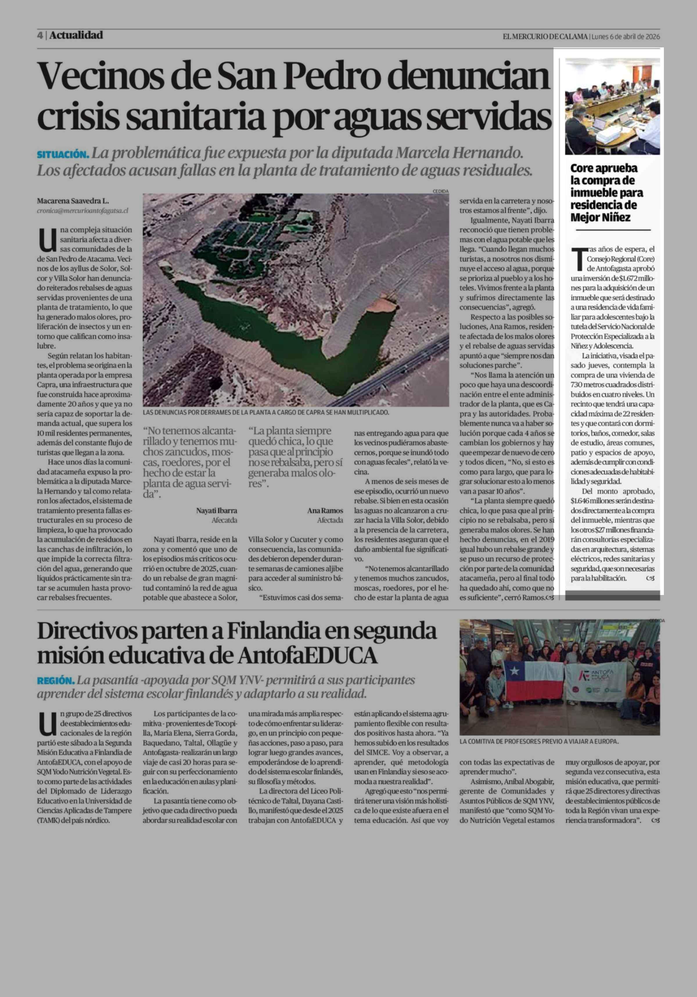 Core aprueba la compra de inmueble para residencia de Mejor Niñez 06-04-2026 El Mercurio de Calama |