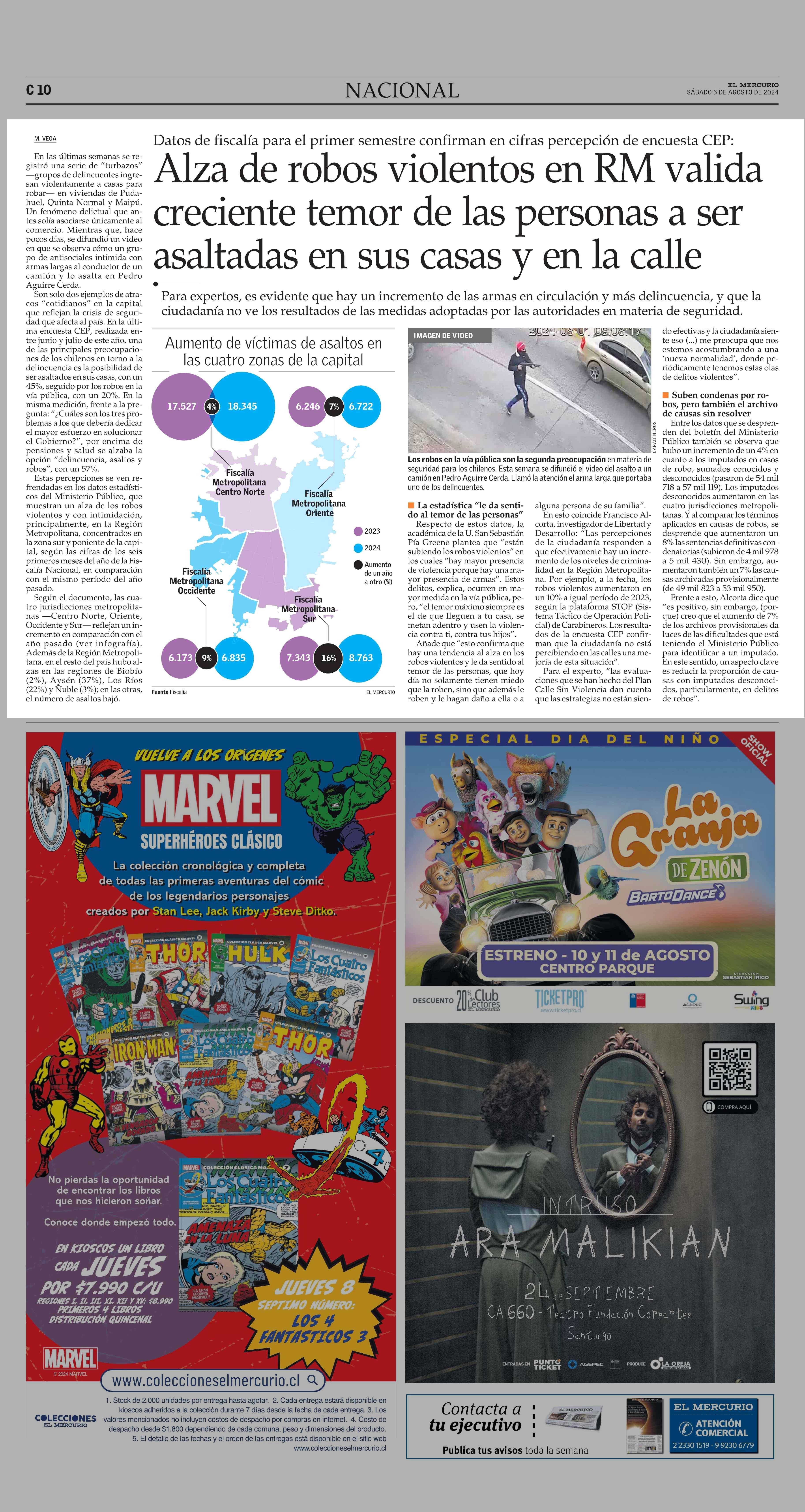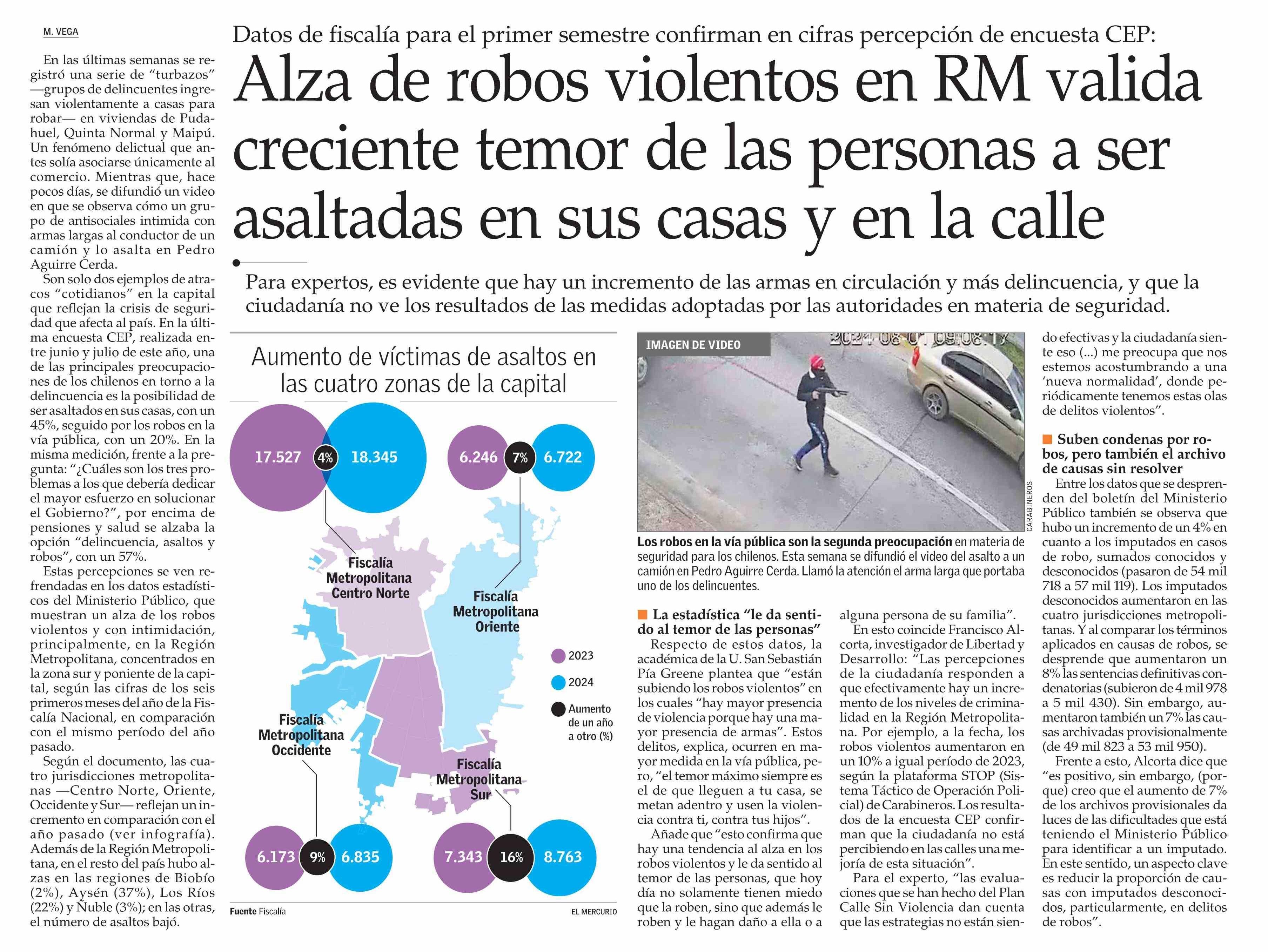 Alza de robos violentos en RM valida creciente temor de las personas a ser asaltadas en sus casas y en la calle 03-08-2024 El Mercurio |