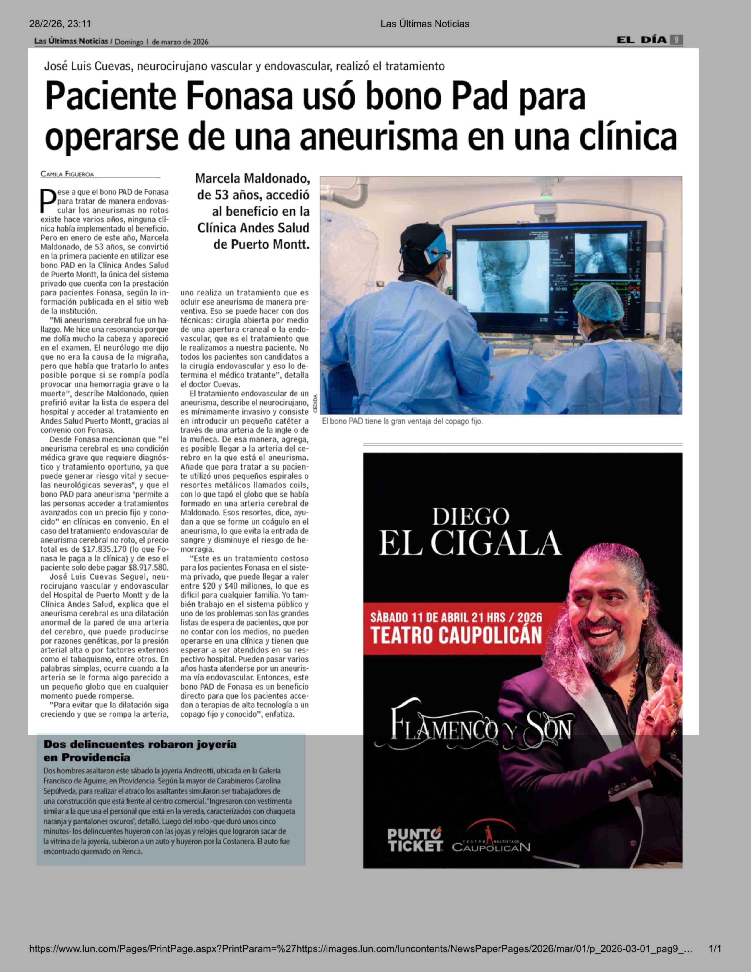 Título: Paciente Fonasa usó bono Pad para operarse de una aneurisma en una clínica