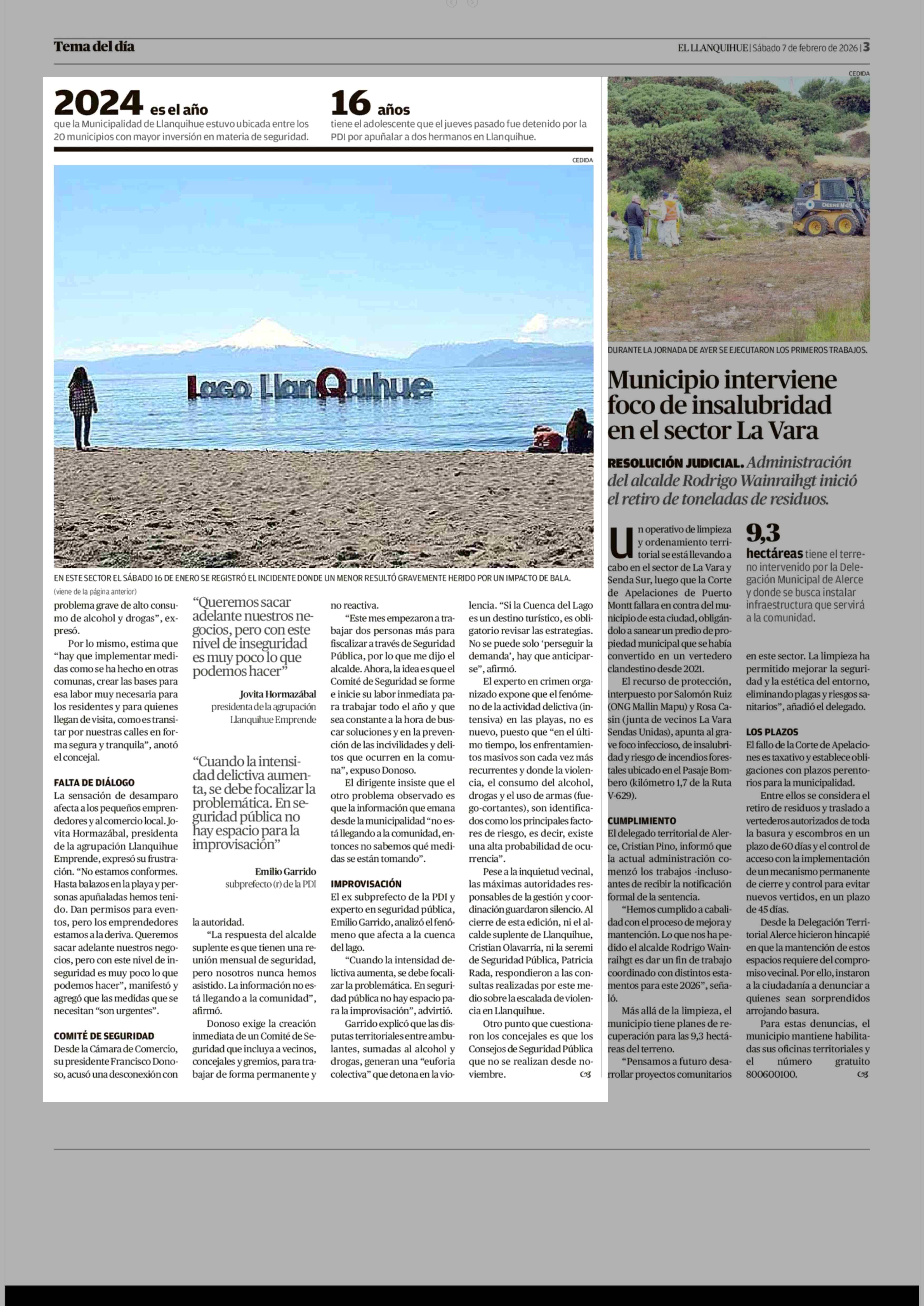 Comerciantes y vecinos piden medidas urgentes en seguridad 07-02-2026 El Llanquihue |