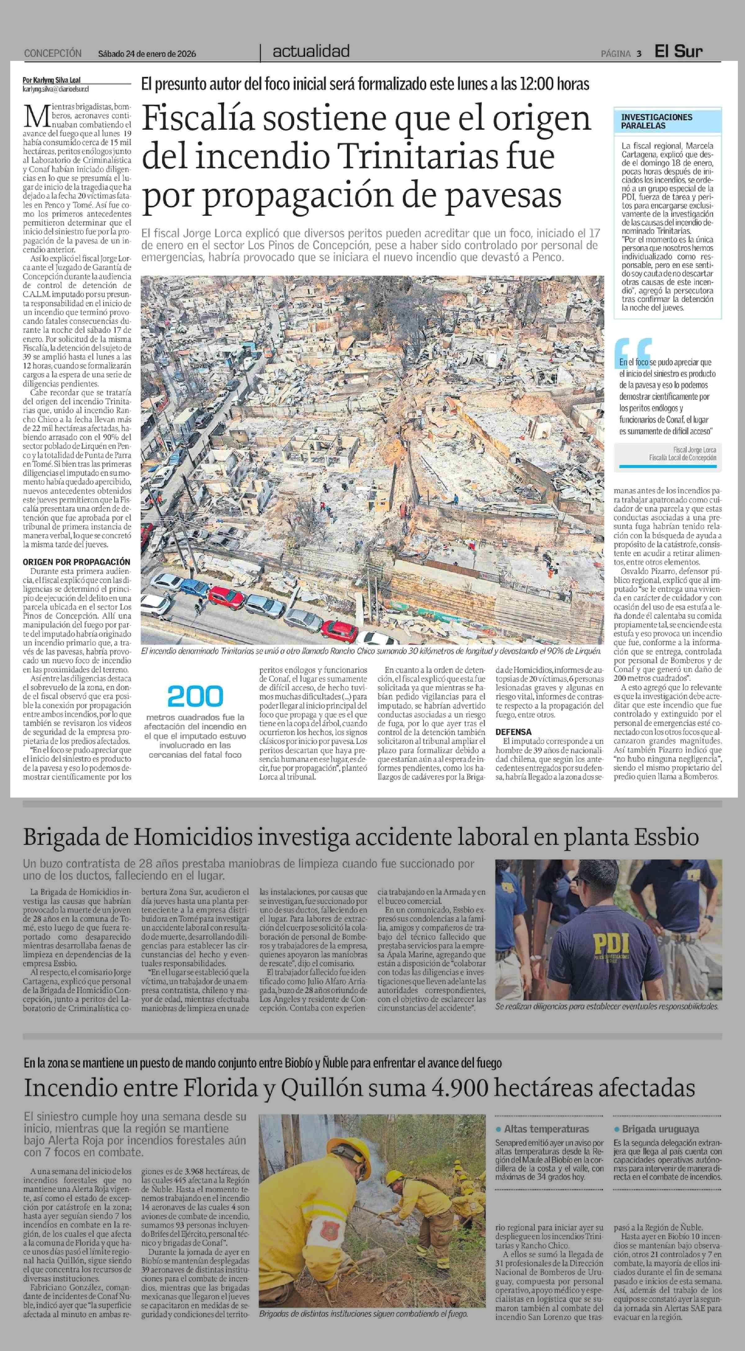 Fiscalía sostiene que el origen del incendio Trinitarias fue por propagación de pavesas 24-01-2026 El Sur |