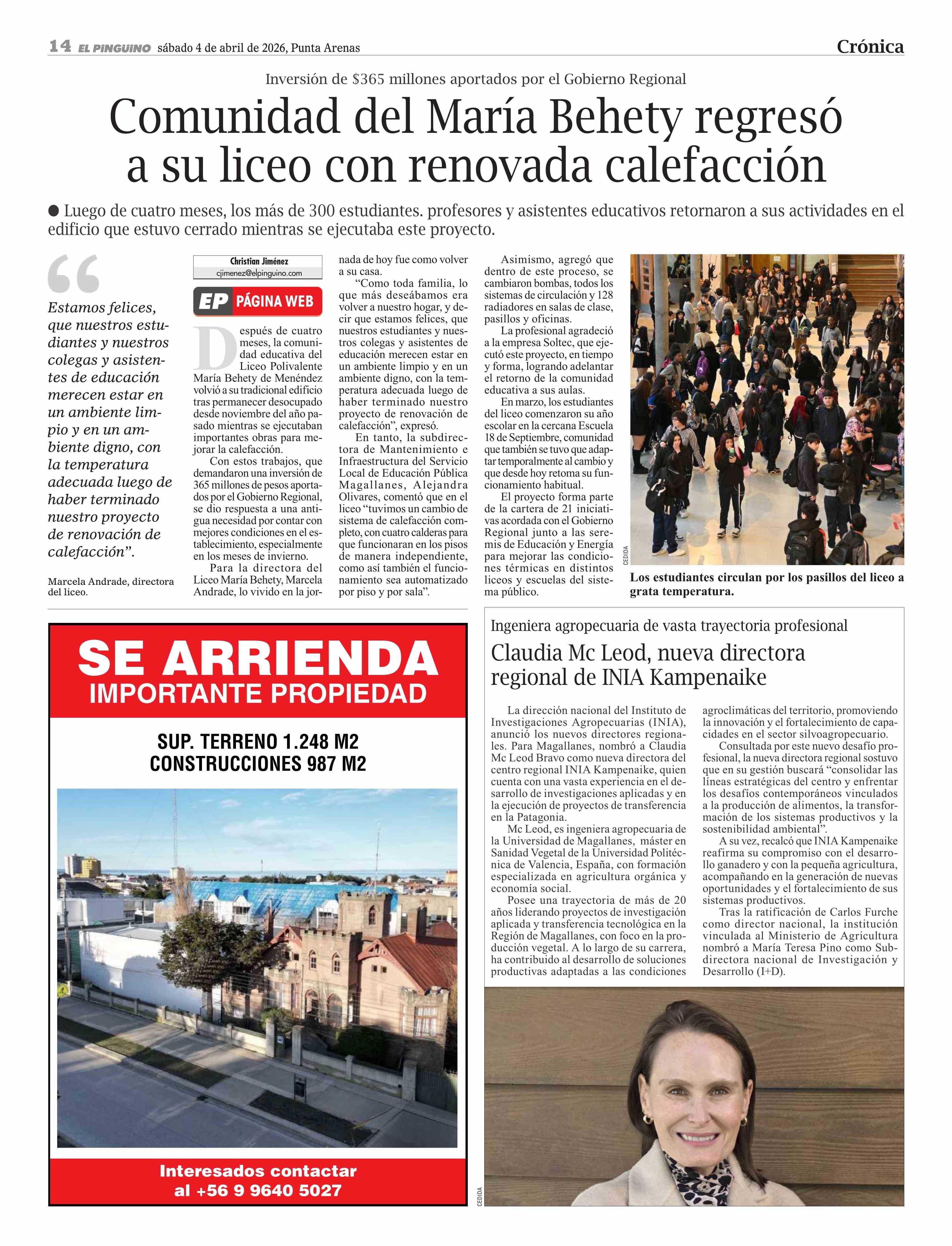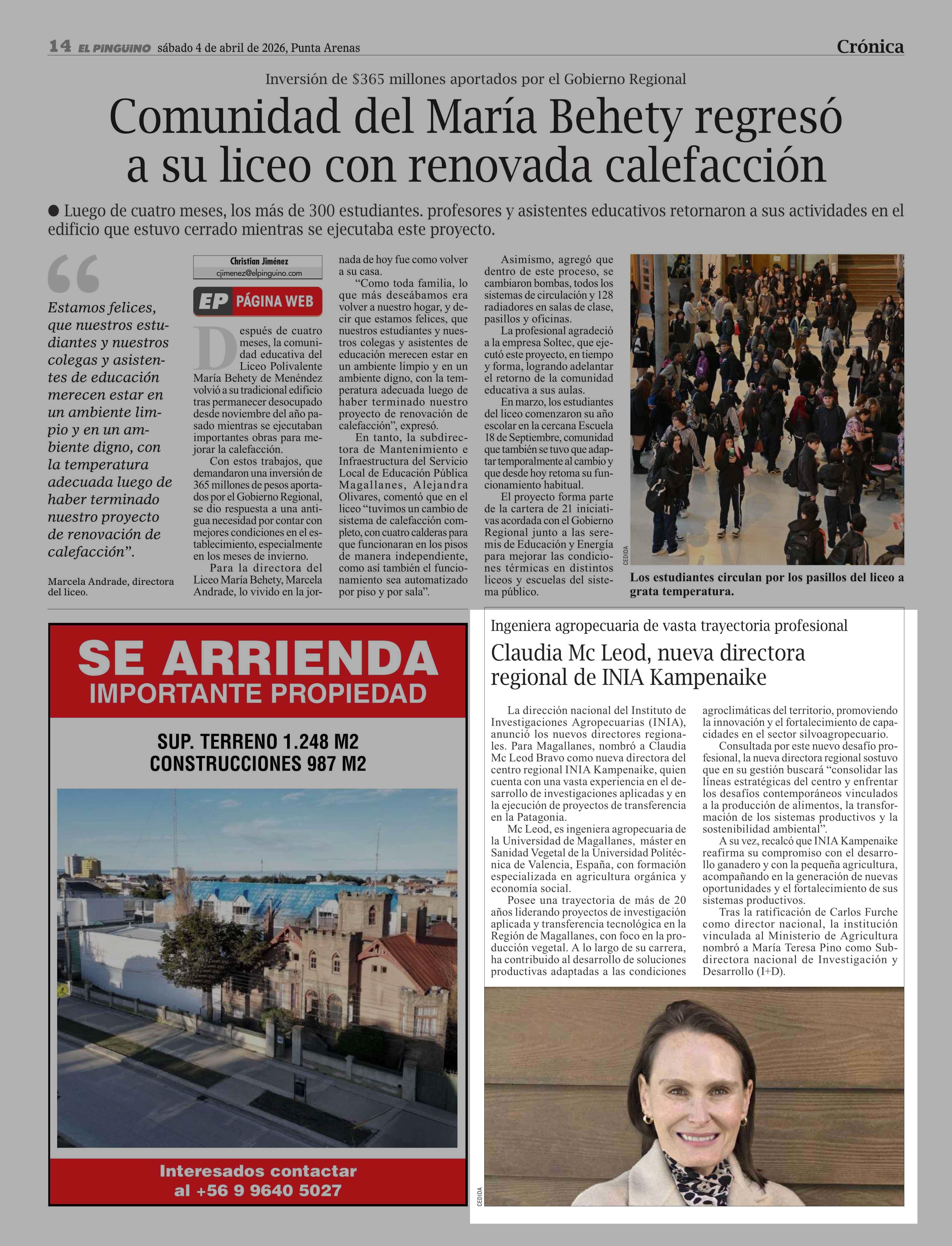 | Fecha: | 04-04-2026 | Sector: | Noticia general | Región: | Región de Magallanes y de la Antártica Chilena |